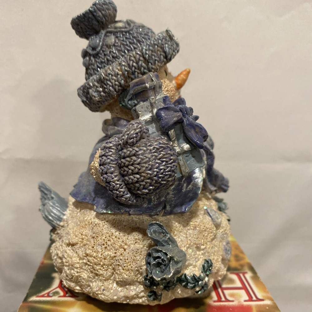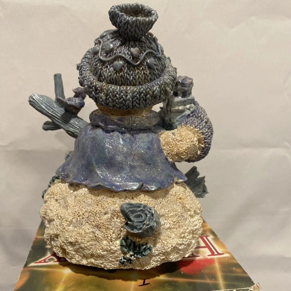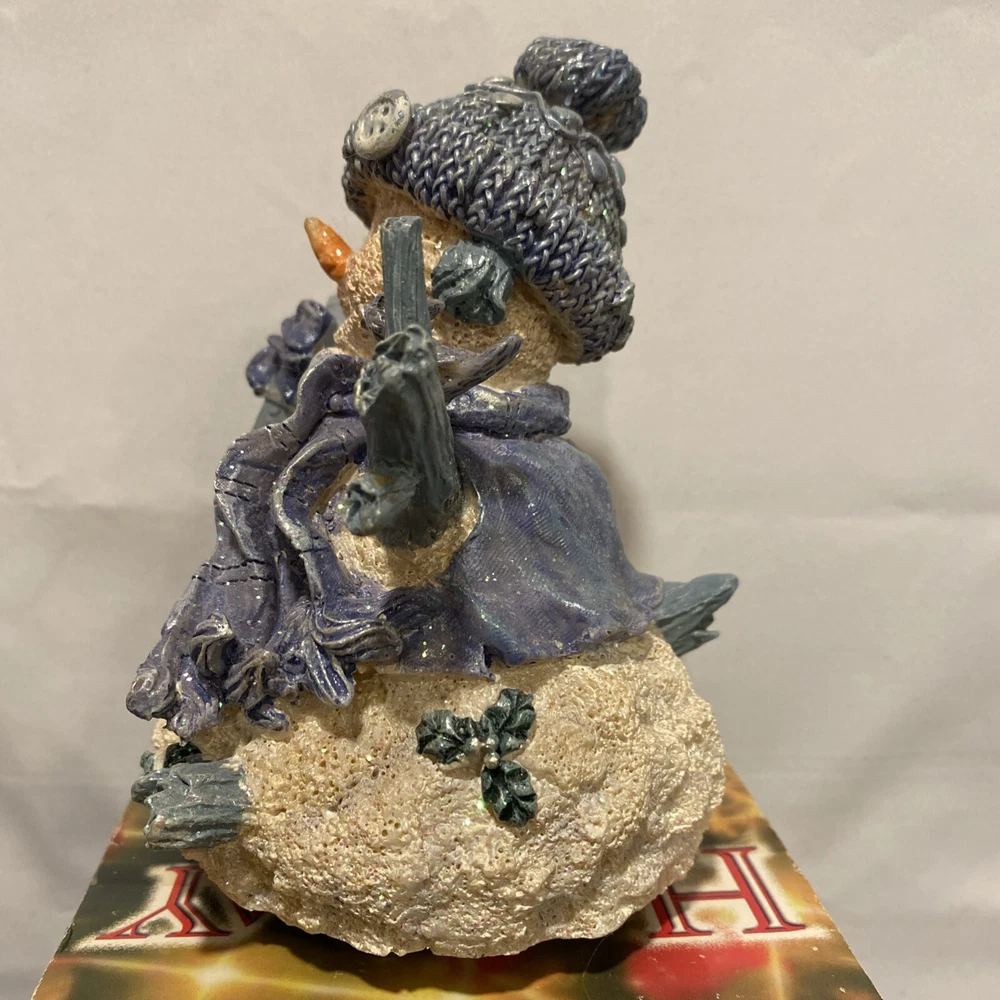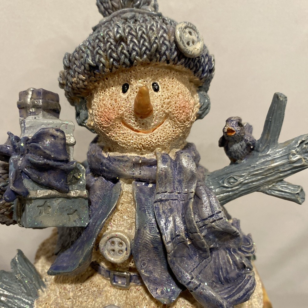 This vintage wind-up music box features Frosty the Snowman, a beloved character from Christmas lore. The small statue is made of resin and features a blue and white color scheme, perfect for any winter-themed decor. The musical feature adds an extra touch of charm to the piece, making it a great addition to any collection. The box was manufactured in China in the year 2000 and is sure to be a treasured find for any collector of holiday and seasonal figurines.