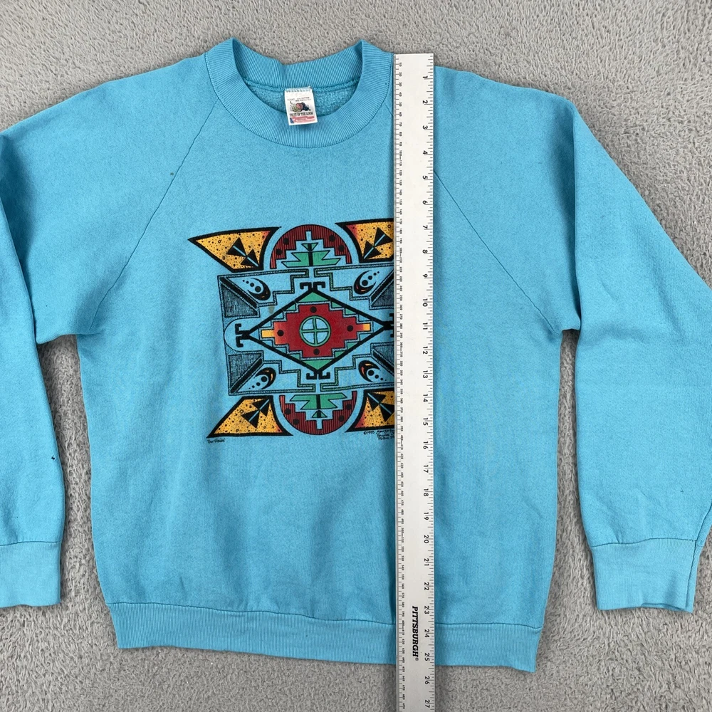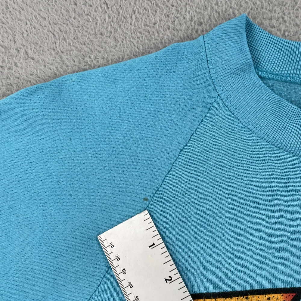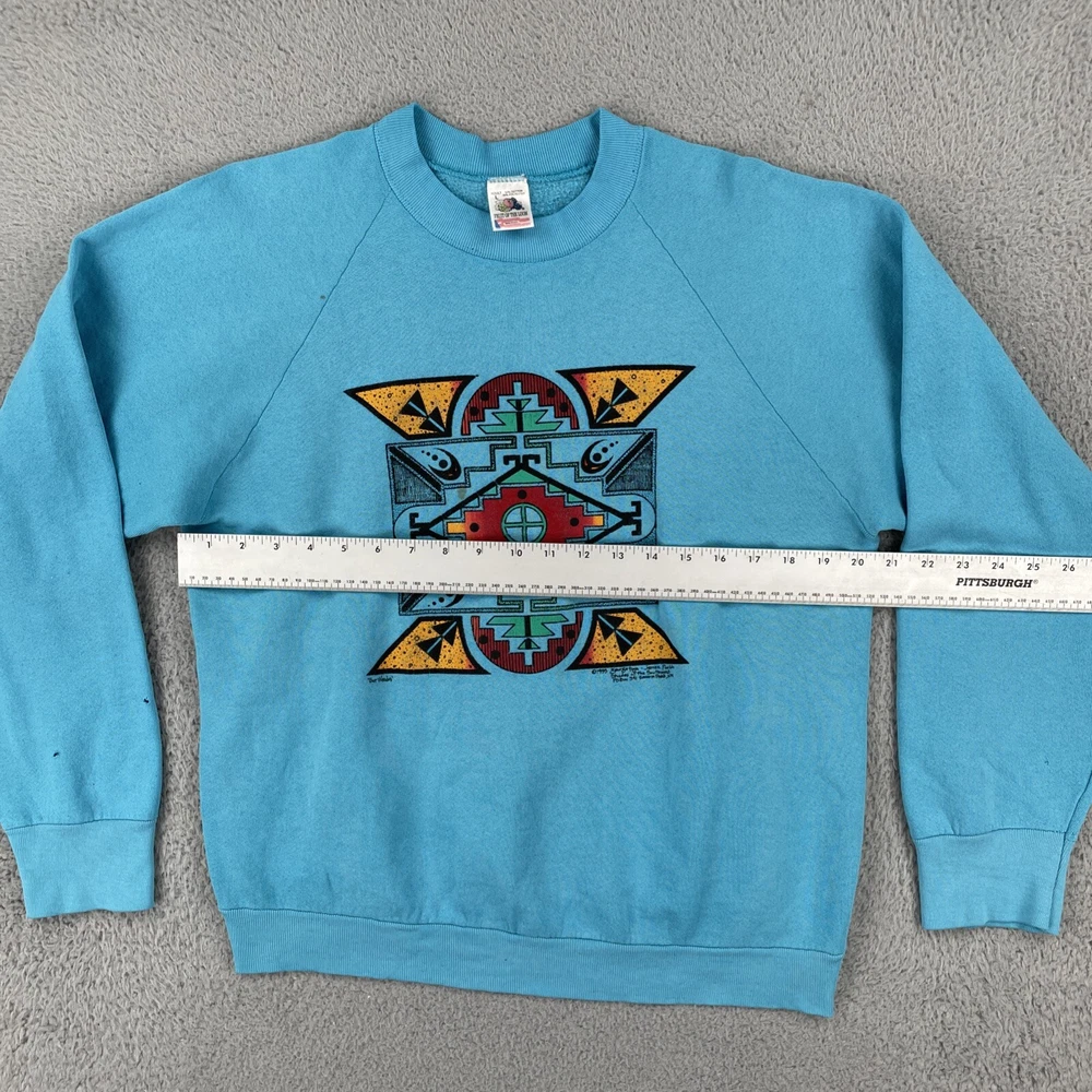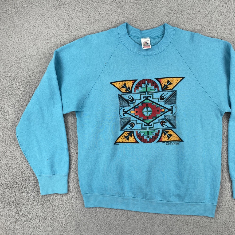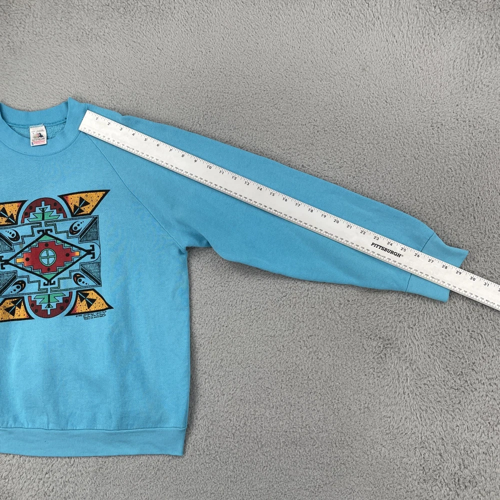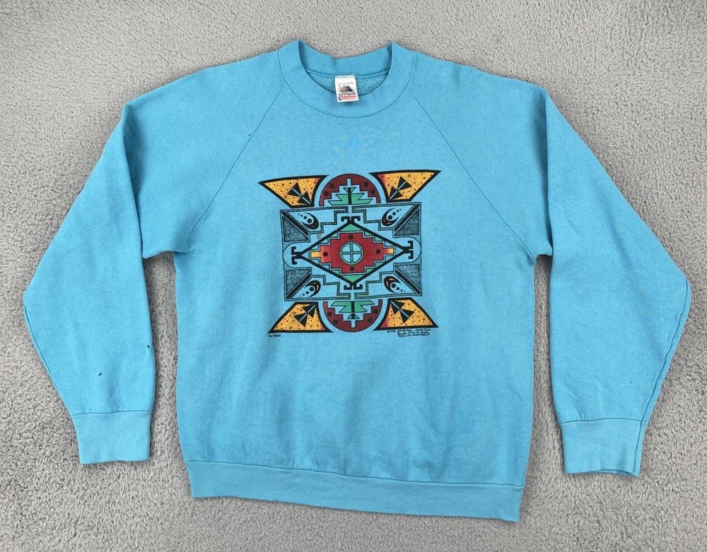 The Vintage Fruit of the Loom Blue Raglan Sweatshirt from 1995 is a classic piece made in the USA. This unisex pullover sweatshirt is crafted from cotton material with a solid blue color and a graphic print of the Four Winds. Perfect for all seasons and featuring a 90s theme, this sweatshirt is a nostalgic addition to any wardrobe for those who appreciate vintage style and American-made craftsmanship. Small holes and stains see pictures See pictures for pictured measurements compare with your favorite garment and ask questions if you have any Add to your collection today Browse my other items I can combine shipping