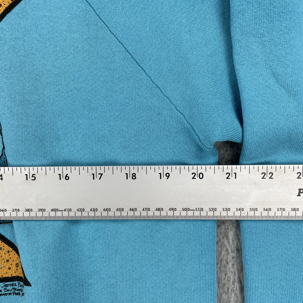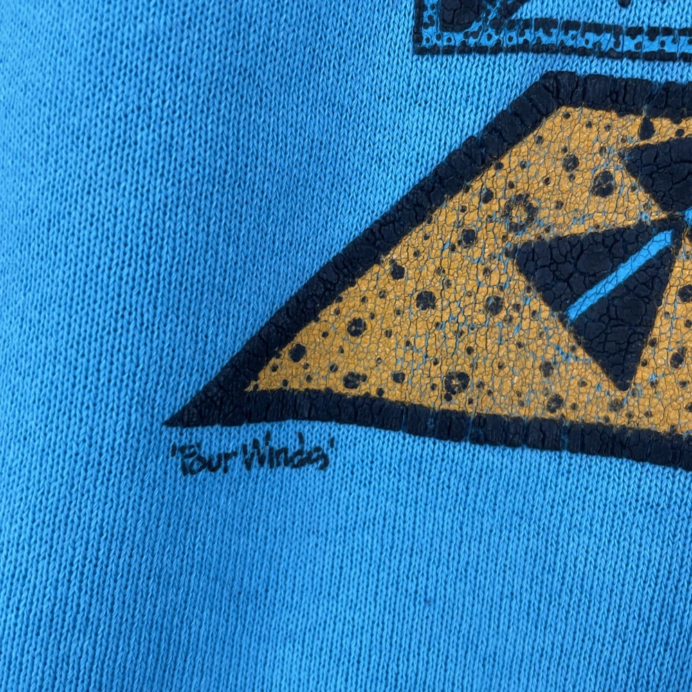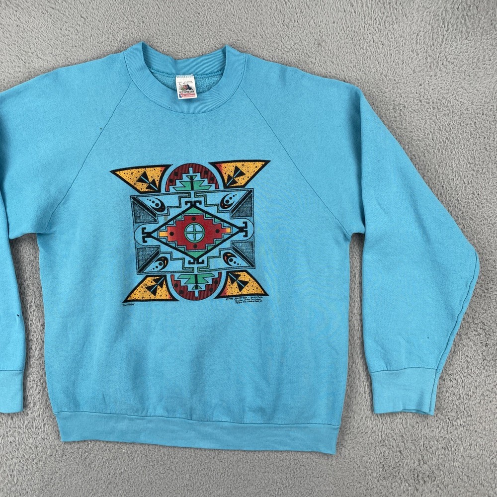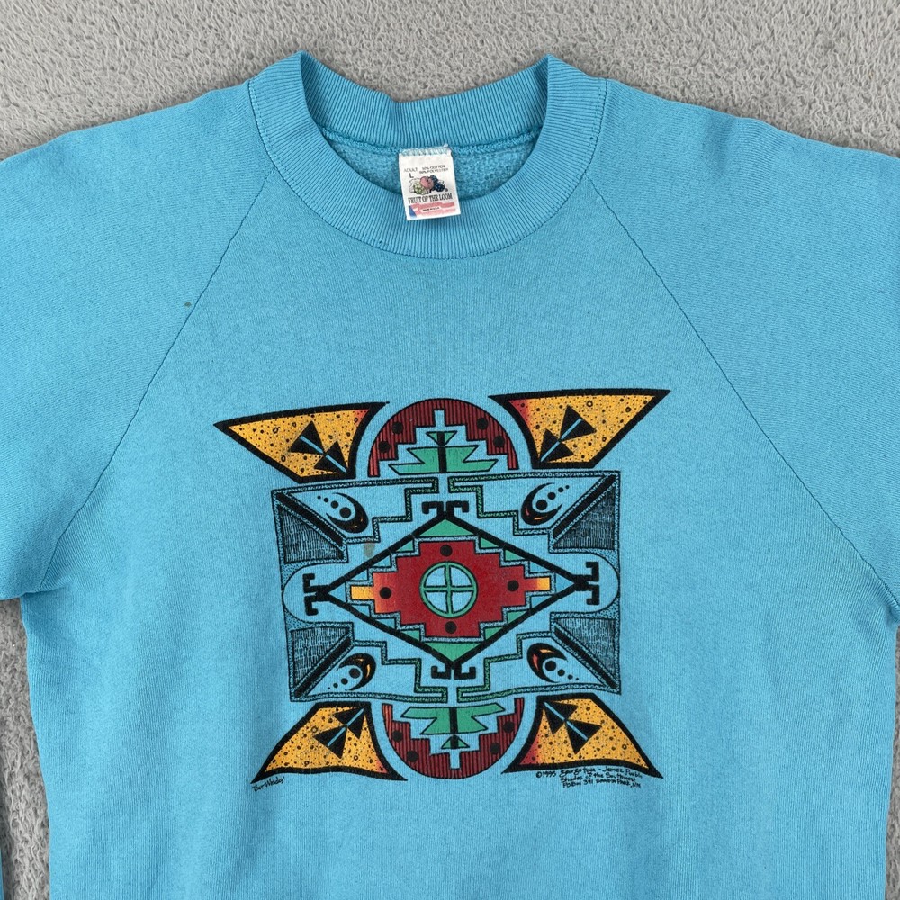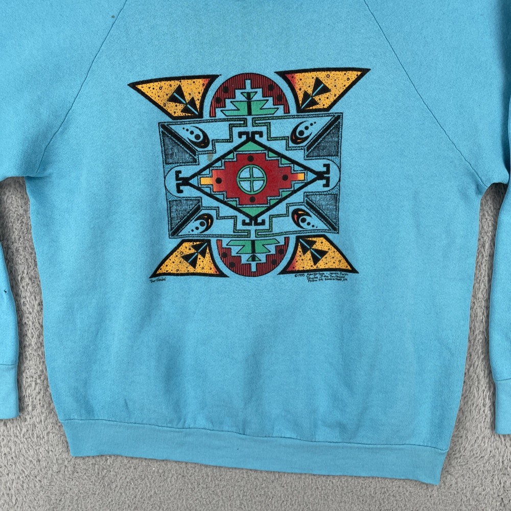 The Vintage Fruit of the Loom Blue Raglan Sweatshirt from 1995 is a classic piece made in the USA. This unisex pullover sweatshirt is crafted from cotton material with a solid blue color and a graphic print of the Four Winds. Perfect for all seasons and featuring a 90s theme, this sweatshirt is a nostalgic addition to any wardrobe for those who appreciate vintage style and American-made craftsmanship. Small holes and stains see pictures See pictures for pictured measurements compare with your favorite garment and ask questions if you have any Add to your collection today Browse my other items I can combine shipping