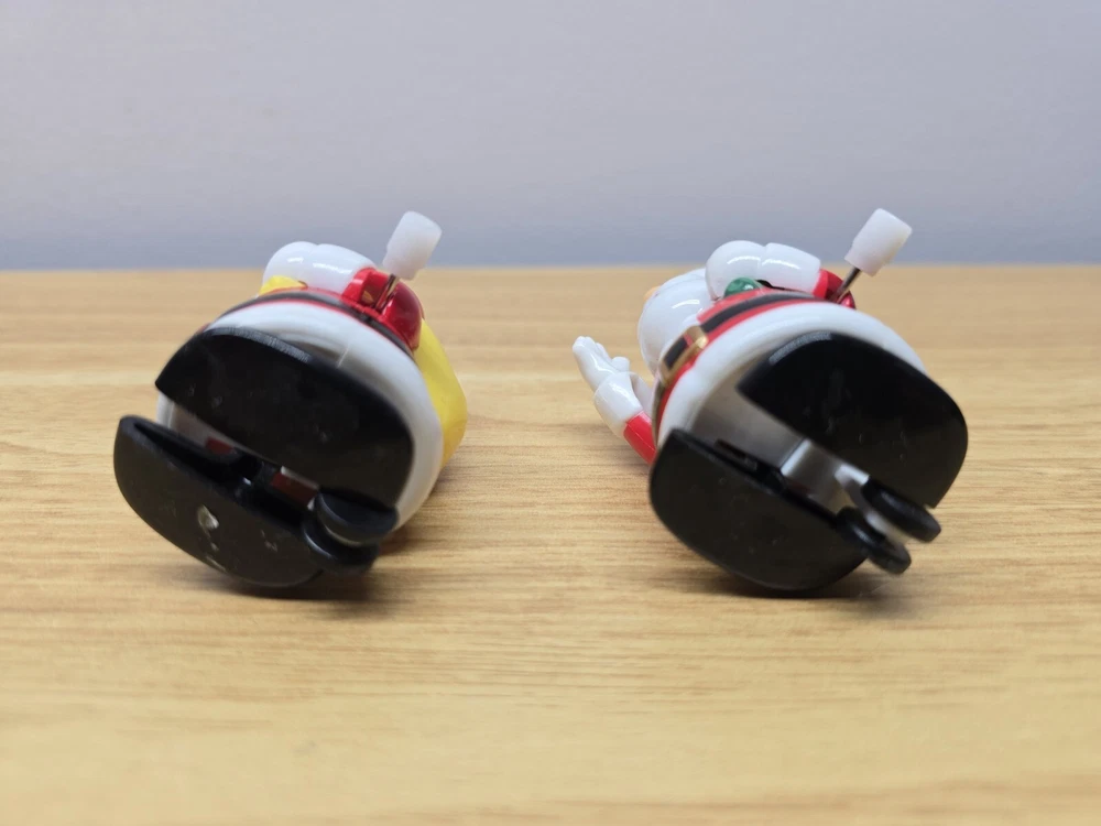Vintage Fun World Christmas Hard Plastic Wind Up Bobbing Santa Waving Walking NOTE: The one with the green bag works, and the yellow one doesn't. AS IS RED DRAW