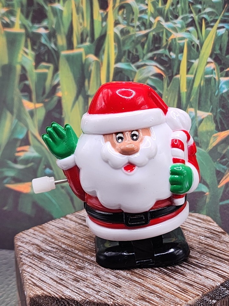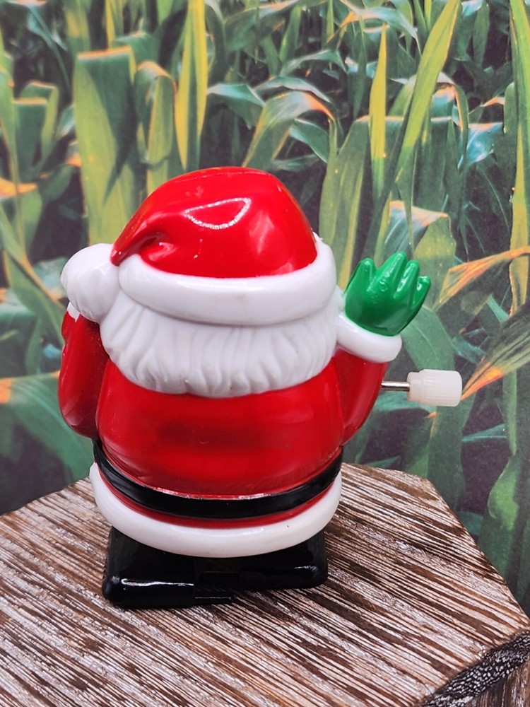 This vintage Fun World Santa Claus toy is a small, multicolor plastic figurine that is wind-up powered. It features a glossy finish and is designed to walk when wound up. The toy depicts Santa Claus in a festive Christmas theme and is an officially licensed reproduction from the 2010-2019 time period. Made in China, this collectible Santa Claus figurine is a charming addition to any holiday decor.
