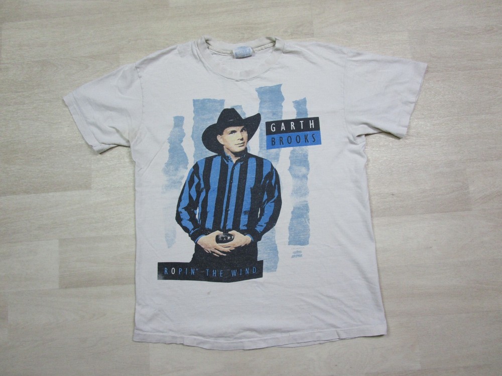**Love this vintage Garth tee! The '90s graphic is so cool—true retro vibes. Fits just right for a medium, though check measurements to be sure. Some wear and stains, but that just adds to its authentic charm. Great find for any country music fan!**