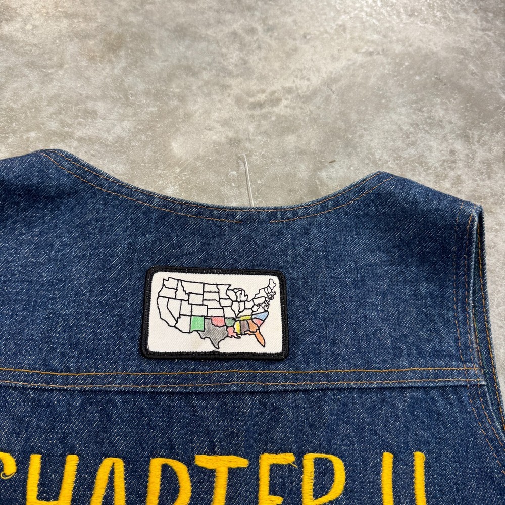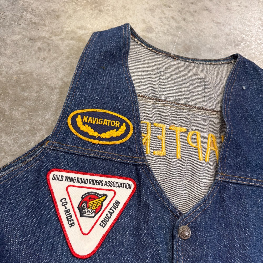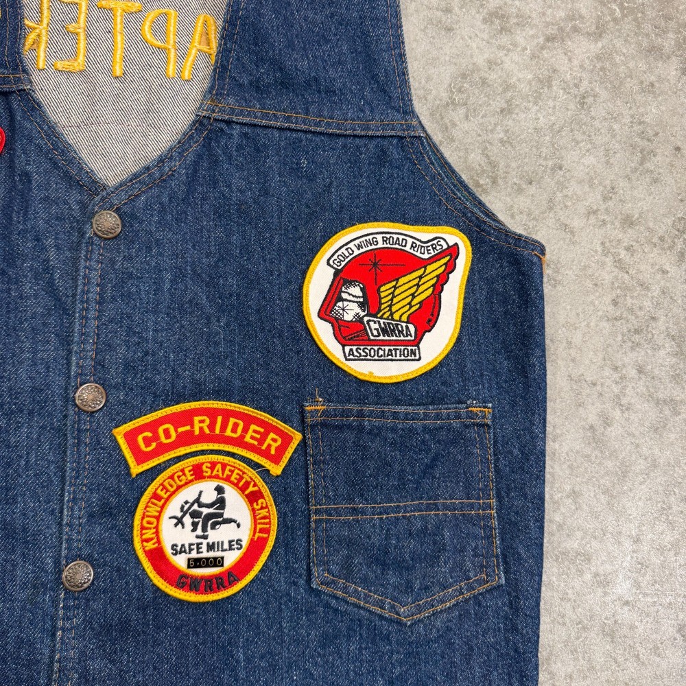 Vintage Gold Wind Riders vest mens Medium Denim blue motorycle patches harley Please check the measurements in the photos in order to gurantee correct fit of the clothing item! the measurements tend to be located at the end of the set of photos! thanks! Our customers are always our first priority here at MJTvintage! if you ever have any concerns please contact us we typically respond very promptly! if there is for any reason your not happy with a purchase don't leave a bad review just contact us and we will be happy to accomodate any issues you had, we believe in going the extra mile for our customers!! lastly, you are always the top priority as the customer and we thank you for your support! Contact us We can be contacted at any time through eBay messages if you have any questions, comments or product requests. We will respond to you within 24 hours and do our best to help you out! We encourage our customers to contact us with any questions or concerns! We'd like to be sure you are completely satisfied with your purchase. Returns For our Buyers Convienience we offer free returns! we do though stringly discourage returns for the item not fitting as we include detailed measurements in our listings so please try to be respectful of that, thanks! Shipping All packages are shipped next day 100% of the time except if purchased on the weekend they go out on monday morning! we pride ourselves on our fast shipping and hold true to it always! Disclaimer most of the items we sell are vintage (20 years & older), therefore some of them might have minor flaws that are caught in the pictures but we try our hardest to describe and picture any flaws! Free eBay listing template designed by © dewiso.com .