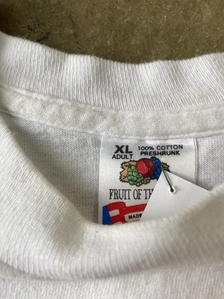Note there is a small faint yellow spot on front of the bottom hem Tagged XL fits more like modern L See photos 21” pit to pit 28” length...