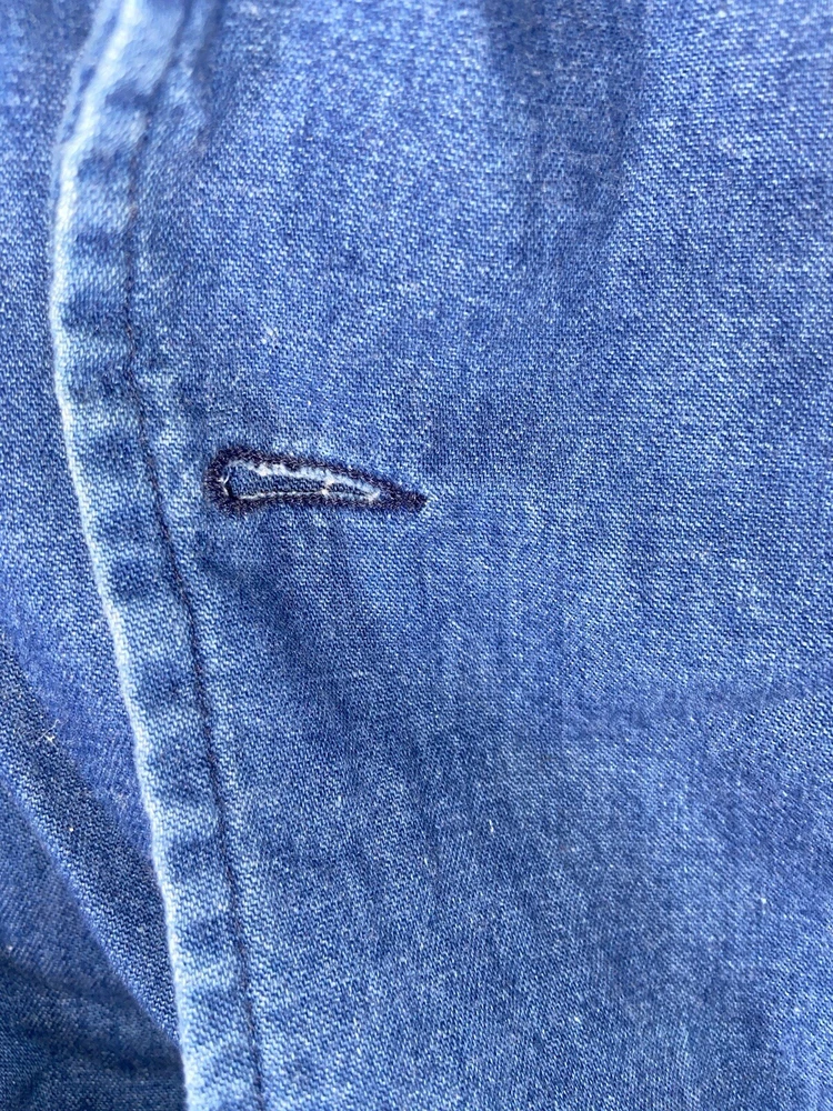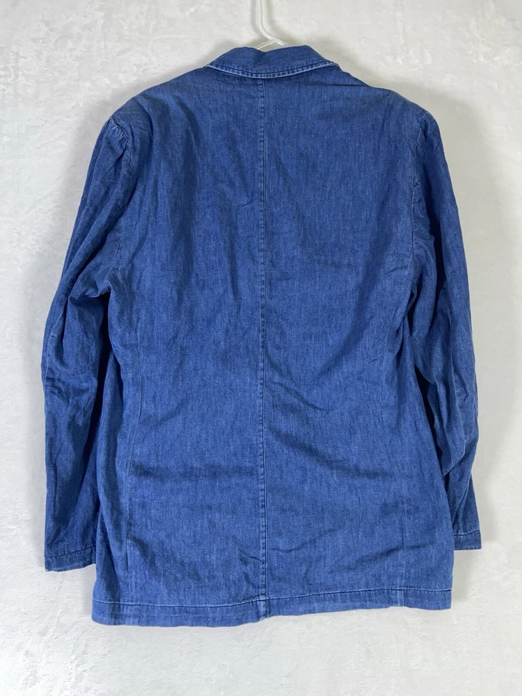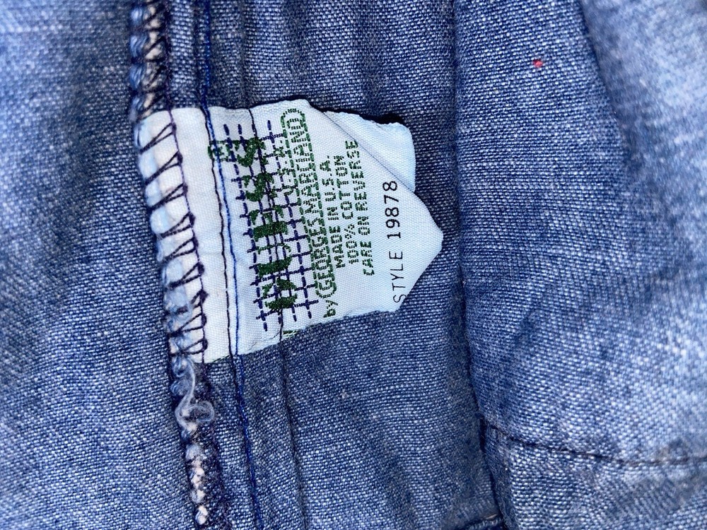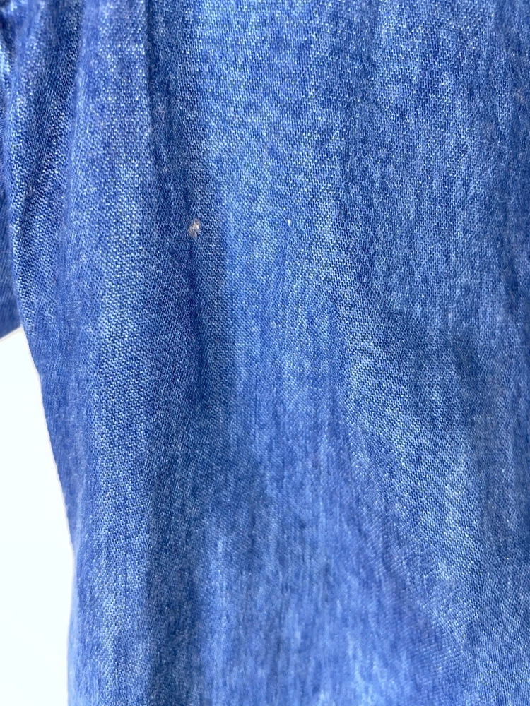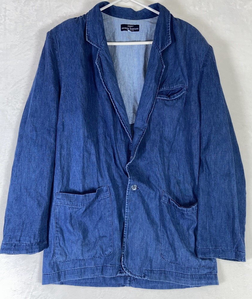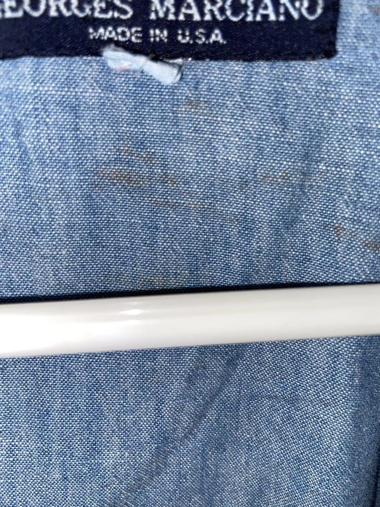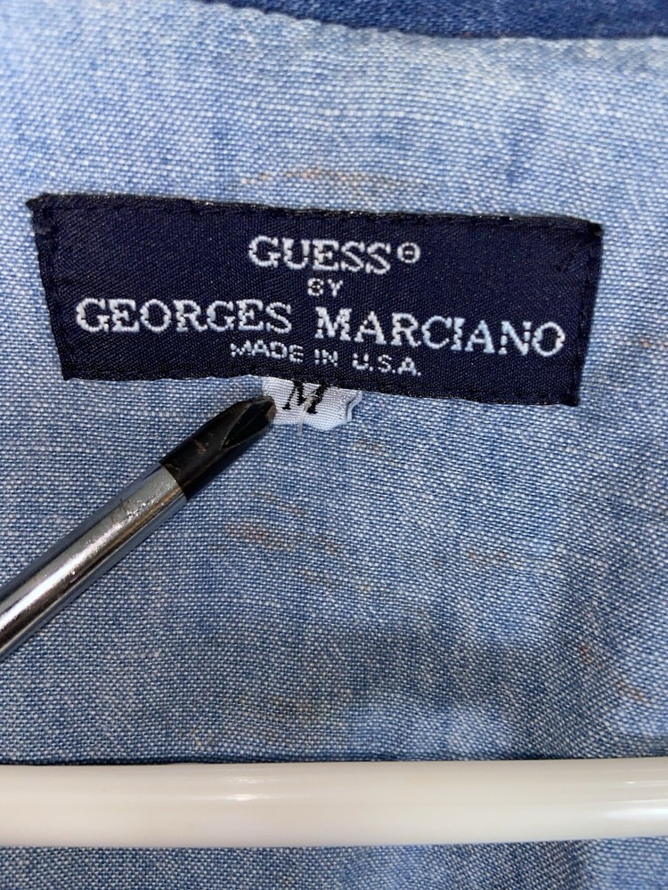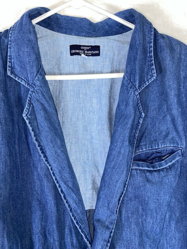 This vintage Guess denim jacket is a must-have for any fashion enthusiast. Made in the USA in the 80s, it features a button closure and a spread collar, making it perfect for both casual and workwear occasions. The jacket is windproof, oversized, and comes in a limited edition design, with soft shell and breathable fabric that makes it suitable for all seasons. It also has pockets to keep your essentials safe and secure. The jacket is machine washable and made of denim fabric, giving it a classic and retro look. The Guess logo adds a touch of elegance to the jacket, making it a perfect choice for those who want to show off their style. See condition issues consistent with age pictured.