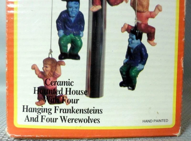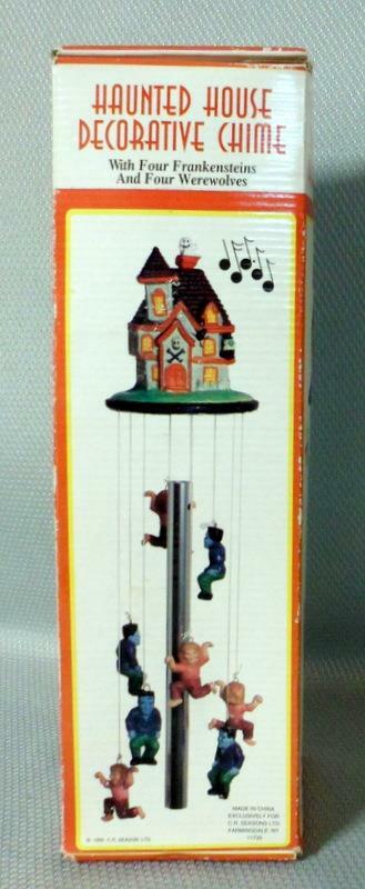 Vintage Halloween Frankenstein Wolfman Haunted House Wind Chime MIB Vintage Halloween Frankenstein Wolfman Haunted House Wind Chime MIB Click images to enlarge Description Mint in box, by C. R. Seasons , four hanging werewolves and four Frankensteins (all factory wrapped), measuring 14” long. Payment Payment must be received within 3 days. NOTE: PLEASE WAIT FOR INVOICE BEFORE PAYING on auction items (excluding Buy It Now) or you may pay too much for shipping! Items with free shipping need not wait for an invoice. Thank You! Shipping All shipping charges include a handling fee. Insurance is included with handling fee for delicate items. Shipping will be by USPS First Class Mail on items weighing less than 5 ounces, by USPS Priority Mail on items weighing over 5 ounces and in some cases USPS First Class, and by USPS Parcel Select/USPS Retail Ground on items weighing over 4 pounds (unless USPS Priority Mail is less) for US domestic purchases. US Domestic larger and/or heavier items cost more, so FedEx Home Delivery, FedEx Smartpost and UPS Ground are available options and will be used if found to be cheaper when creating shipping labels. USPS Priority Mail includes tracking. US Domestic shipping is free via First Class Mail for items weighing less than 5 ounces. Please keep in mind there is limited tracking available for First Class Mail and no insurance against loss or damage. International items will be shipped via USPS First Class Mail International for unbreakable items weighing less than 4 pounds, and via eBay International Standard Delivery or Priority Mail International on all others unless requested with conditions. Please keep in mind there is no insurance for lost items and no tracking available for First Class shipping to some countries. Larger, heavier odd shaped items will cost more to ship so take this into account when bidding!! Most items will be shipped within 1 day of receipt of payment. I do combine shipping on multiple orders from same auction . All above statements are true unless otherwise indicated on shipping invoice. Terms of Sale All sales are " AS IS " & used so PLEASE LOOK AT THE PHOTOS, READ THE DESCRIPTION & ASK QUESTIONS!!! What you see in the photos is what you will be gettin g unless specifically noted in description . We are not experts in everything & some things may seem to be complete to us but in fact are missing a part that we are not aware of, SO ASK QUESTIONS!!! Items such as glass & pottery have characteristics that occur from the mfg process. If you can't live with a straw mark in a glass bowl or a flaw in a piece of art glass please do not bid. Due to editing, colors of items may be slightly different in person. Contact Us You can contact us through eBay Messaging. Pictures sell! Auctiva offers Free Image Hosting and Editing. 300+ Listing Templates! Auctiva gets you noticed! The complete eBay Selling Solution. Track Page Views With Auctiva's FREE Counter