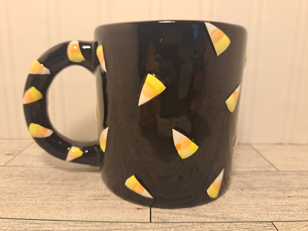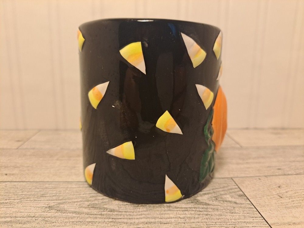 Vintage Halloween Mug By Jay Import LTD. Design Features a 🎃 Pumpkin Surrounded by Candy Corn. It's Black background With an Orange Jack O' Lantern and Orange, Yellow, and White Candies, the Finish is Glossy. This used vintage item is in good condition, for its age and use. As always, please review the photos closely as they are the best description of an item's quality.
