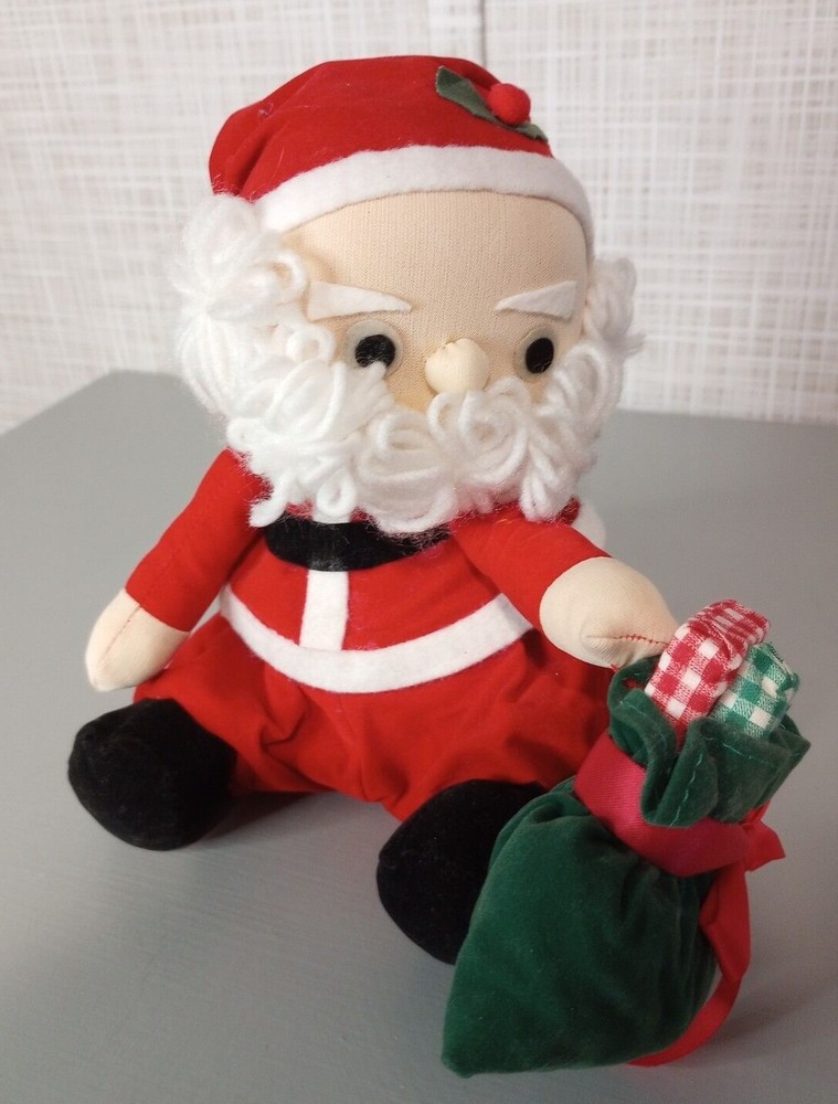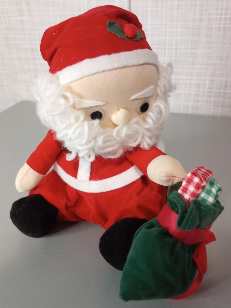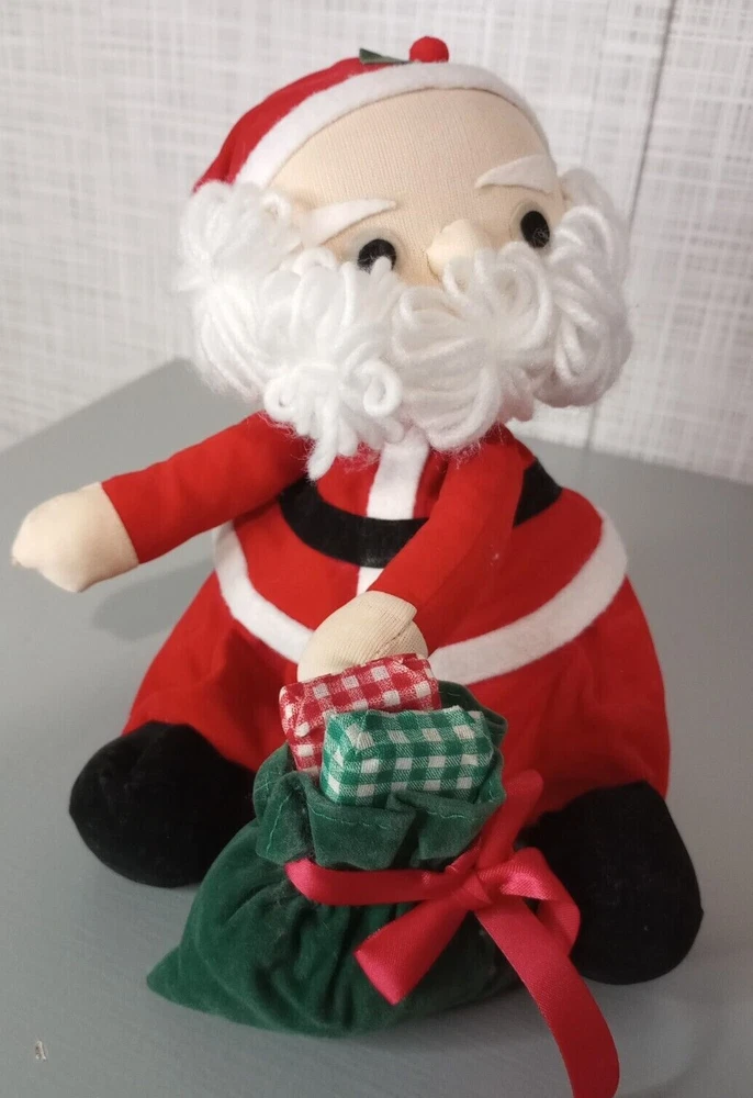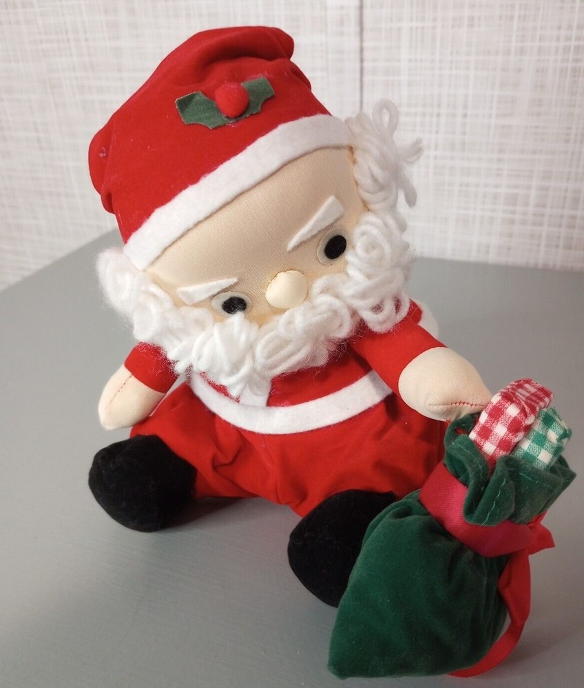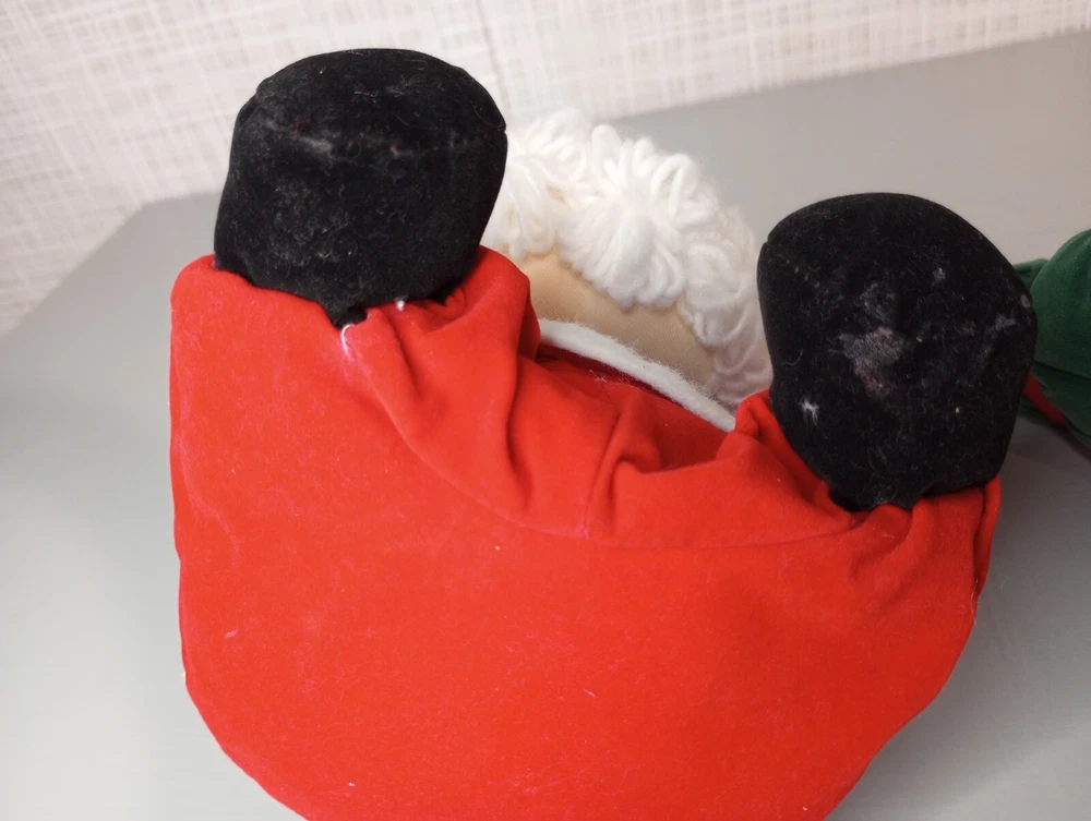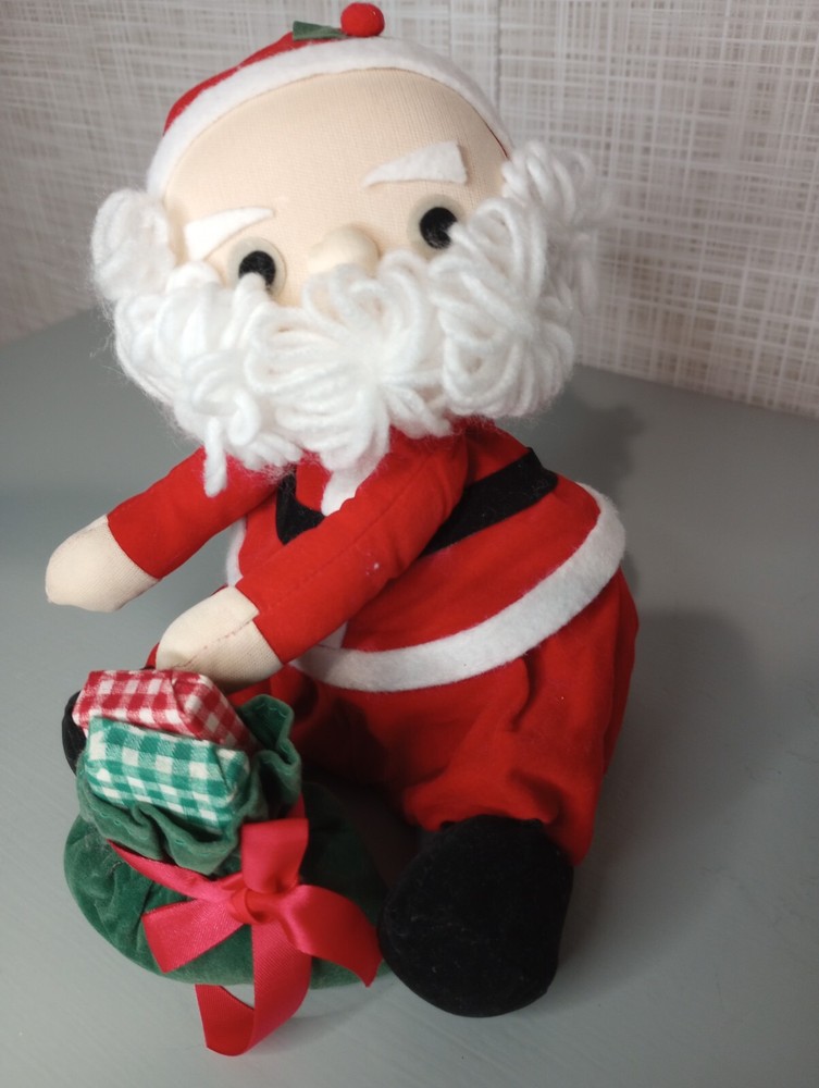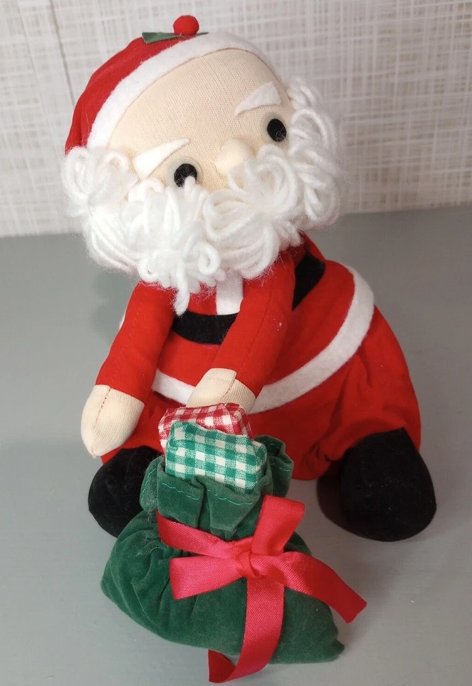 Vintage Hand Stitched Wind Up Moving Musical Santa Claus Sitting With Gifts He's Hand Stitched & He's Pretty Old But He's in Good Shape...Has Glue Stains on His Foot I'm Guessing From When He was Made But Can't Say for Sure **(see pics) He's Really Sweet, Plays "Santa Claus Is Coming To Town" As He Moves His Head