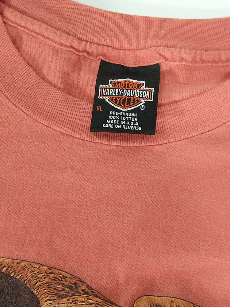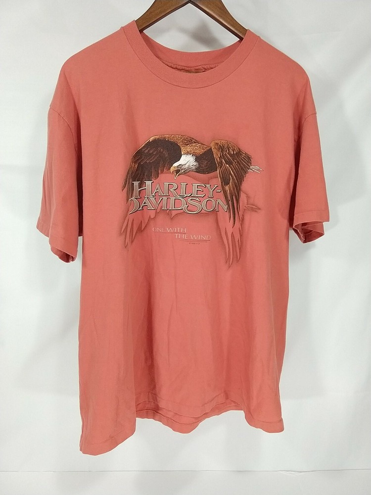 Vintage Harley Davidson 1996 One With The Wind Single Stitch Eagle Print Size XL. Condition is "Pre-owned". Some color fading and graphics cracking from age. Back graphics "Patton" Mobile, Alabama. Shipped with USPS First Class. Length from collar to bottom hem: 29" Width from armpit to armpit: 23"