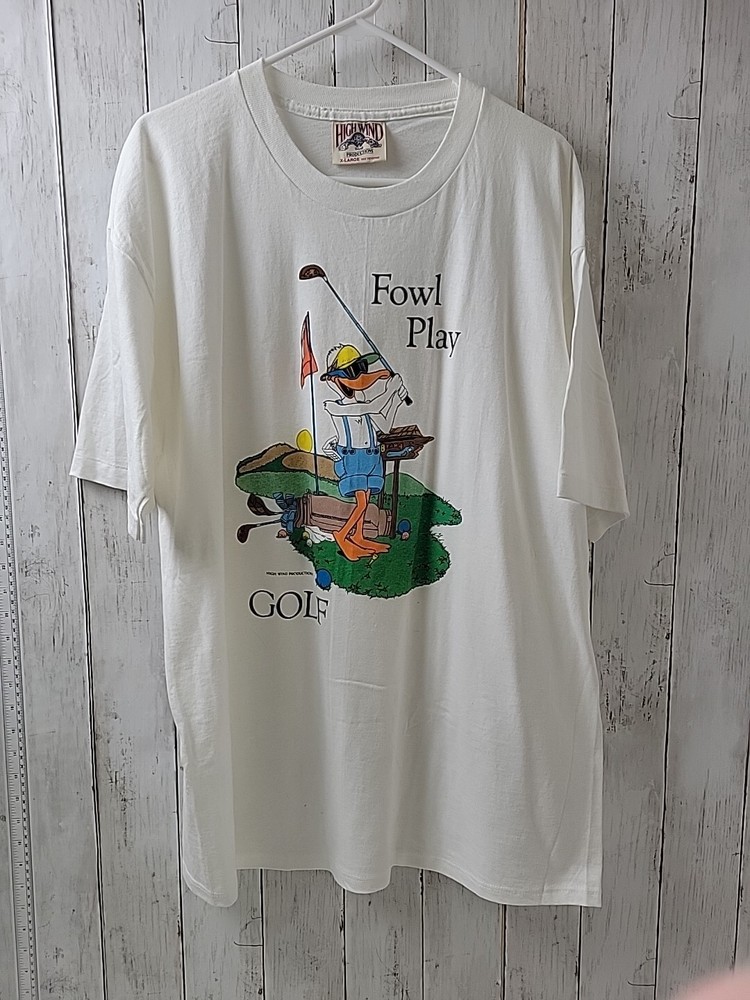 Vintage High Wind Single Stitch Fowl Play Golf White T-Shirt XL Made In U.S.A. It has a couple of small stains. See photos of preowned condition. We combine shipping....