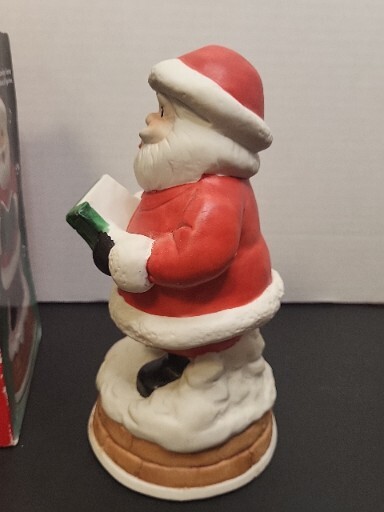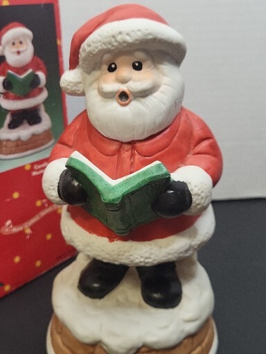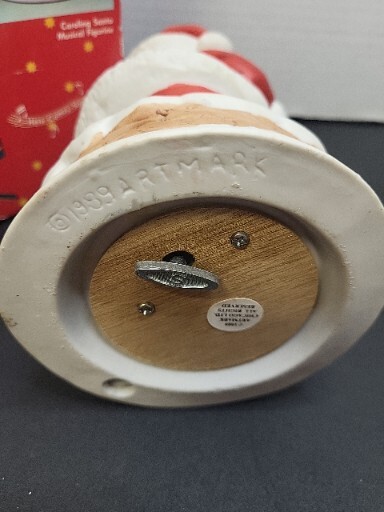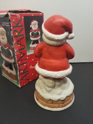 This vintage Artmark wind-up Santa figurine is a festive addition to any holiday collection. With a musical twist, this ceramic/porcelain Santa plays carols while depicting a deer shape and standing at 9 inches in length and 4 inches in width. Perfect for adults who enjoy collecting holiday items, this figurine is made in Taiwan and features Santa in a cheerful pose, ready to spread the holiday cheer. A great item for the Christmas occasion, this Artmark figurine is sure to make anyone's holiday season bright.