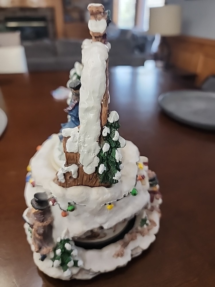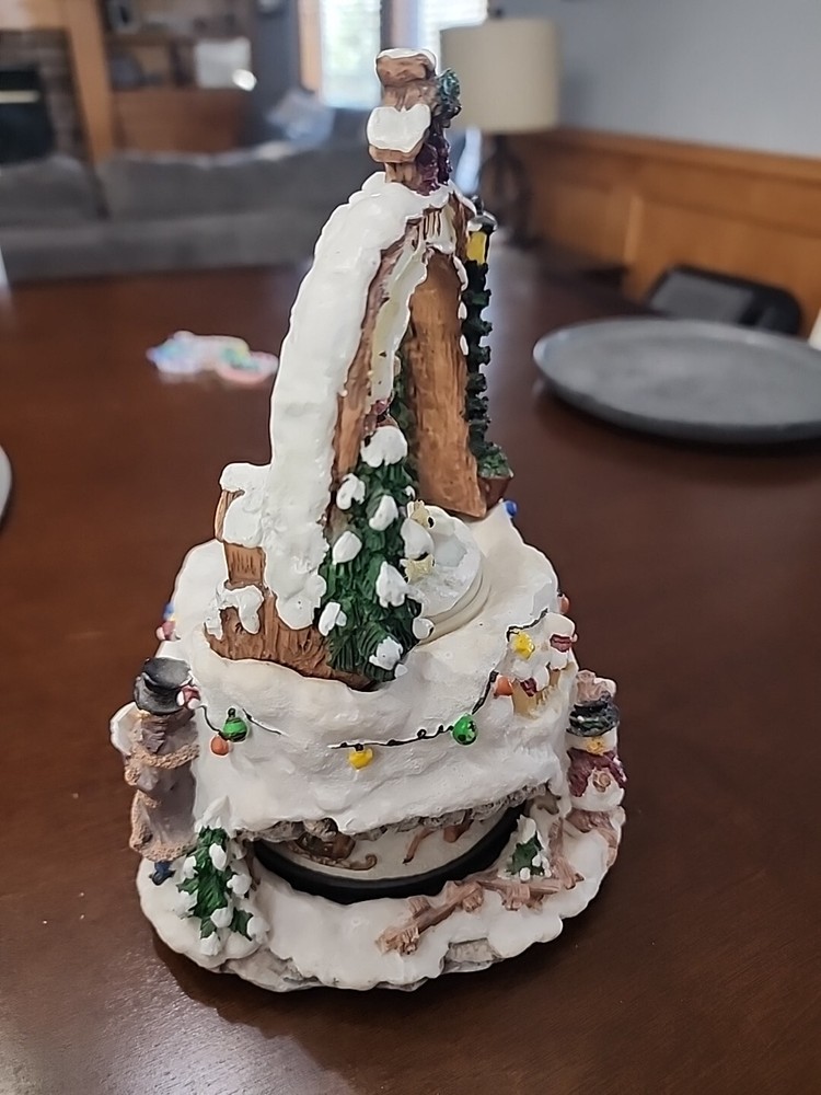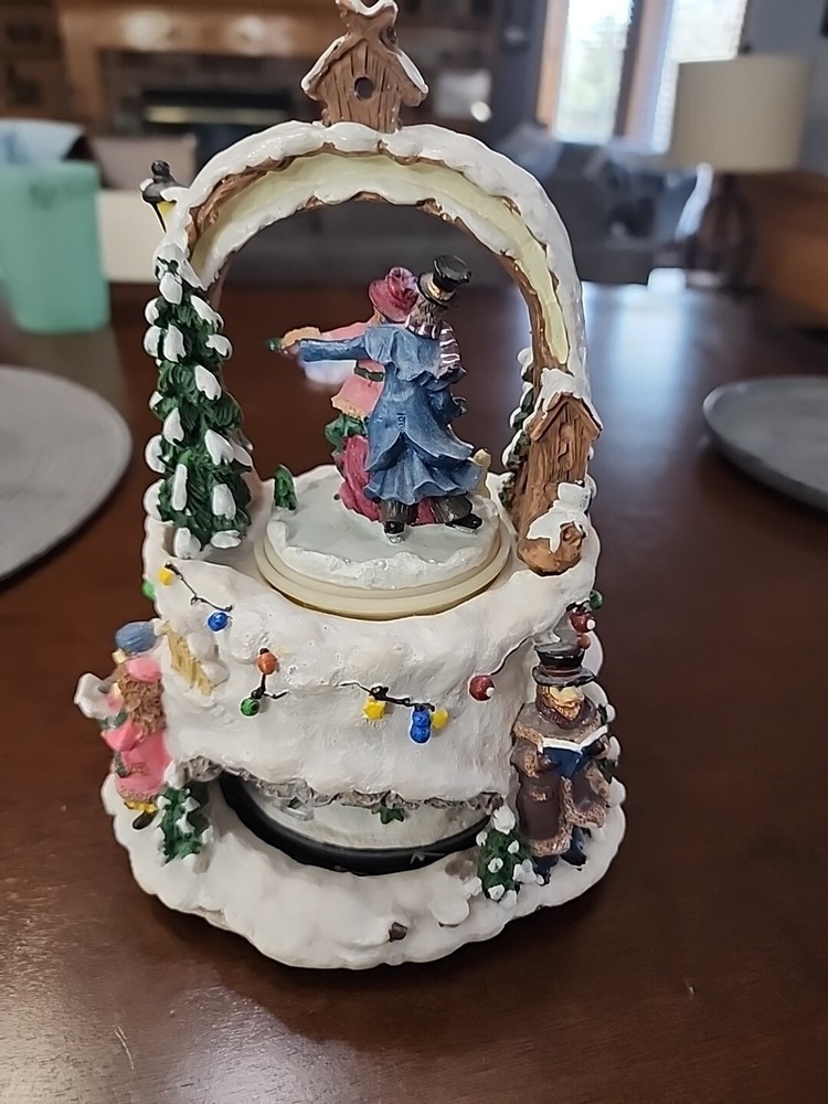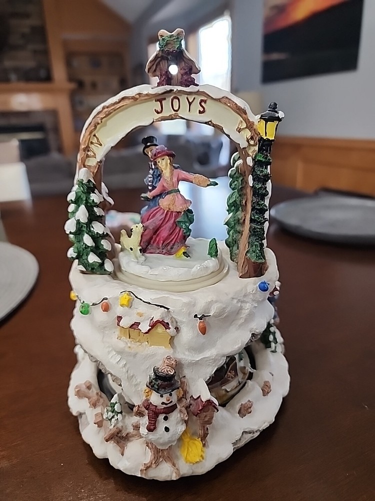 Wind-up music box plays "We wish you a merry Christmas" Celebrate the holidays in style with this vintage wind-up musical Christmas box from our Holiday Collection. The beautifully animated box plays delightful melodies that will transport you to a winter wonderland. It is perfect for collectors and anyone who loves to add some festive cheer to their home. It features charming holiday-themed designs and is not handmade. Whether you're decorating your home or looking for a unique gift, this musical Christmas box is sure to bring joy to your holiday season.