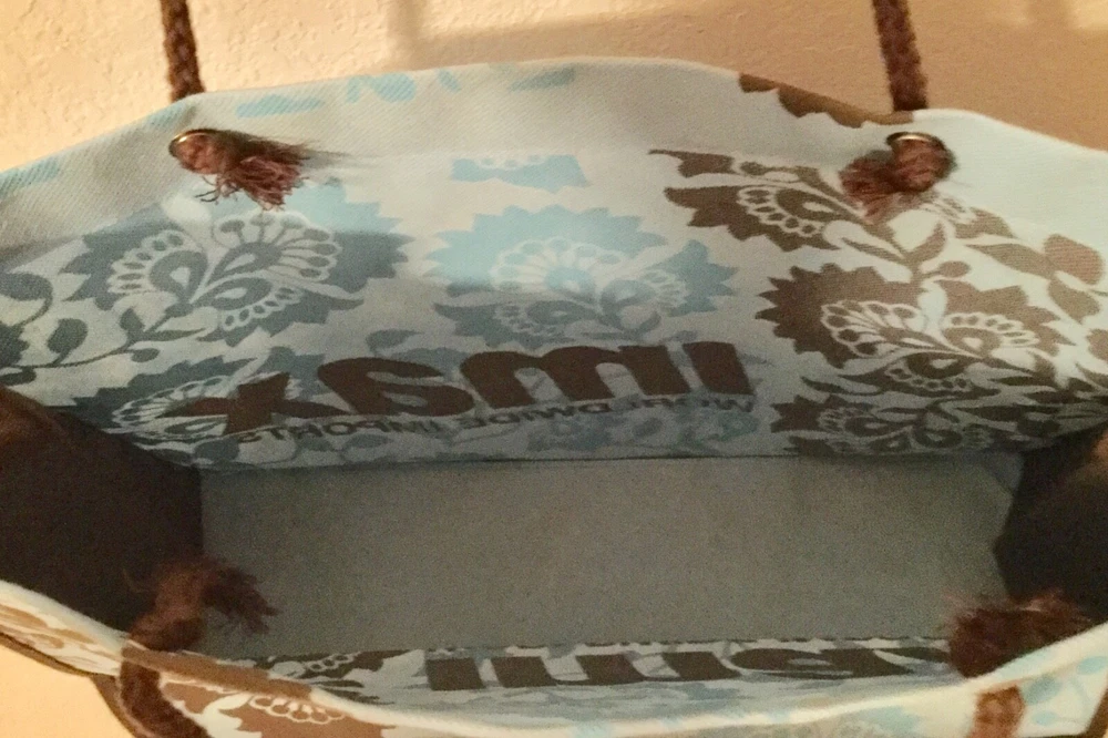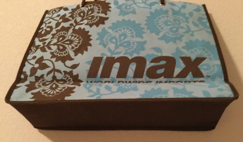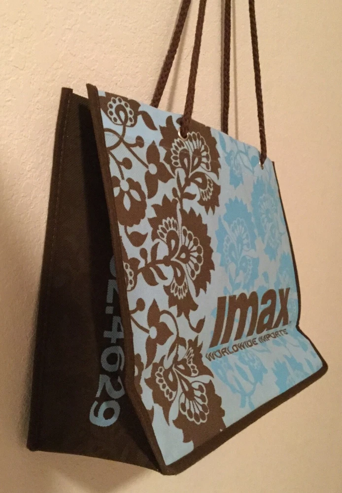 You probably will not find this anywhere else. A beautiful, RARE, and well fabricated tote bag is by IMAX Worldwide Imports. On the front and back are flower designs in blue and brown, all on a light blue background. It would be a perfect shopping bag, picnic bag, beach bag, or just an all day tote. It measures 15 1/2” wide x 11 1/2” high, with a 11 1/2” double brown 1/4” cord strap drop. This bag is over 10 years old, but has been in storage all that time, and never used, always being in a chemical, fragrance, smoke, and pet-free environment. It has no rips, tears, stains, holes, snags, or blemishes. No damage nor soiling. If you are a collector you know how rare this is! BRAND: IMAX Worldwide Imports MODEL: Graphic Tote Bag STYLE: Tote Bag MATERIAL: 100% PolyCanvas COLOR: Blues and Brown SIZE: Medium I ship free within the USA on the same day as receiving payment, using recycled packaging materials whenever possible. Please note, I am an individual seller and though I strive to avoid errors I do sometimes make them. I always wish to correct any mistake or miscommunication as best as possible. Please contact me through eBay should there ever be an issue with a listing or purchase because I want to make it right.