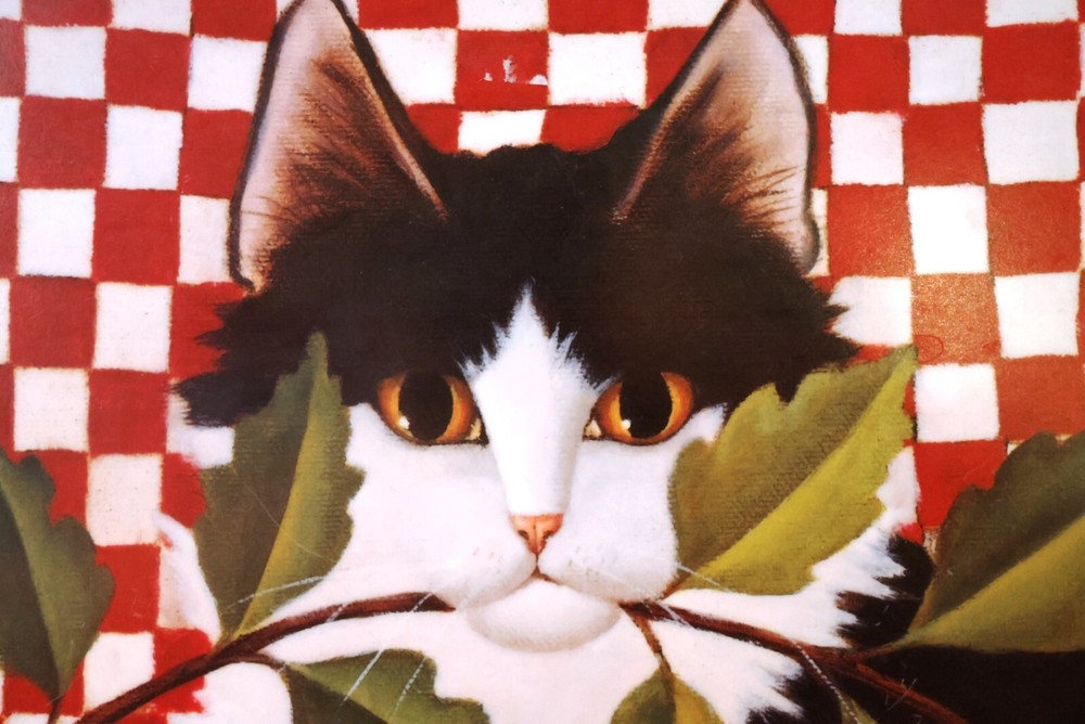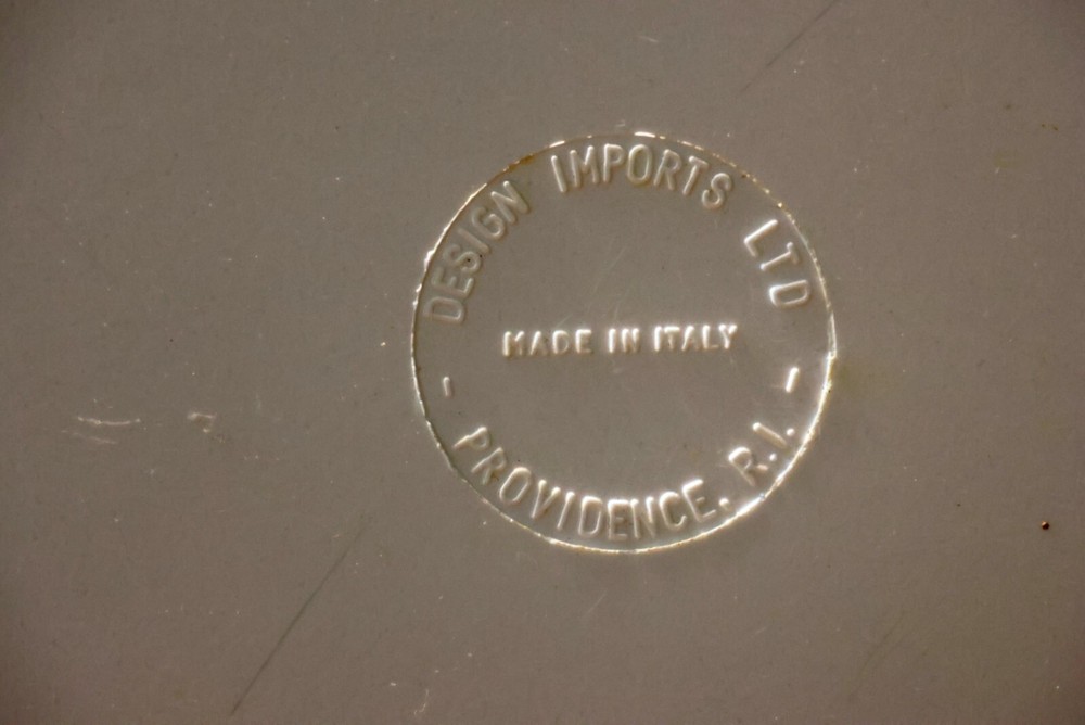 Add a touch of whimsy to your kitchen or dining area with this vintage serving tray featuring a charming black-and-white cat nestled against a bold red checkerboard background. The cat clutches a leafy branch in its mouth, giving this tray a quirky and artistic vibe that’s perfect for cat lovers and collectors alike. Measuring 17 inches wide and 12 inches tall, this sturdy metal tray was made in Italy and distributed by Design Imports Ltd, Providence, RI. The colors remain vivid, and the overall condition is very good with light signs of use appropriate for its age. Perfect for serving drinks, breakfast in bed, or displaying as kitchen decor. Details: Dimensions: 17" wide x 12" tall Material: Metal Marked: Design Imports Ltd, Made in Italy Estimated age: Late 1980s to early 1990s Condition: Light wear with a few marks on the back, front in great condition