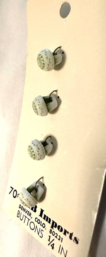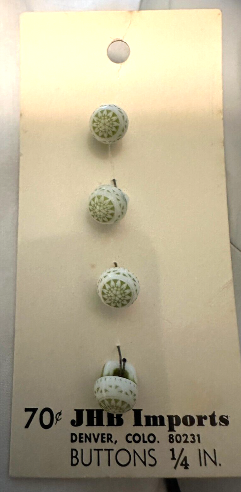 These 4 JHB Imports 1/4 Inch Vintage Buttons Are in Very Good Condition. Still on Original Card with 70 cent price tag. Would be real pretty on a Little Girls Dress or Blouse. Denver Colorado 80231. Unique! #6018