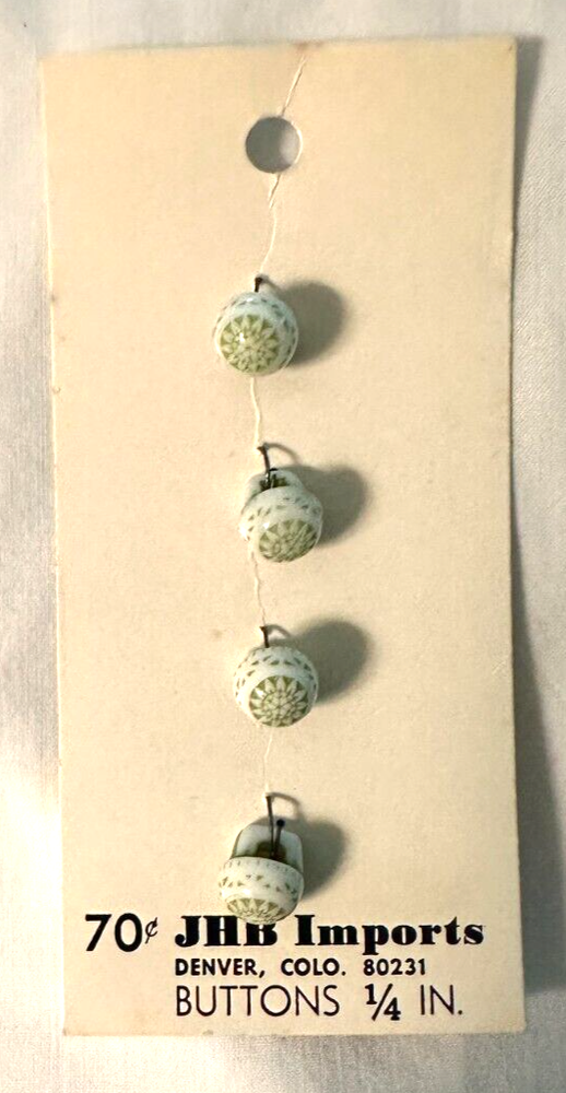 These 4 JHB Imports 1/4 Inch Vintage Buttons Are in Very Good Condition. Still on Original Card with 70 cent price tag. Would be real pretty on a Little Girls Dress or Blouse. Denver Colorado 80231. U...