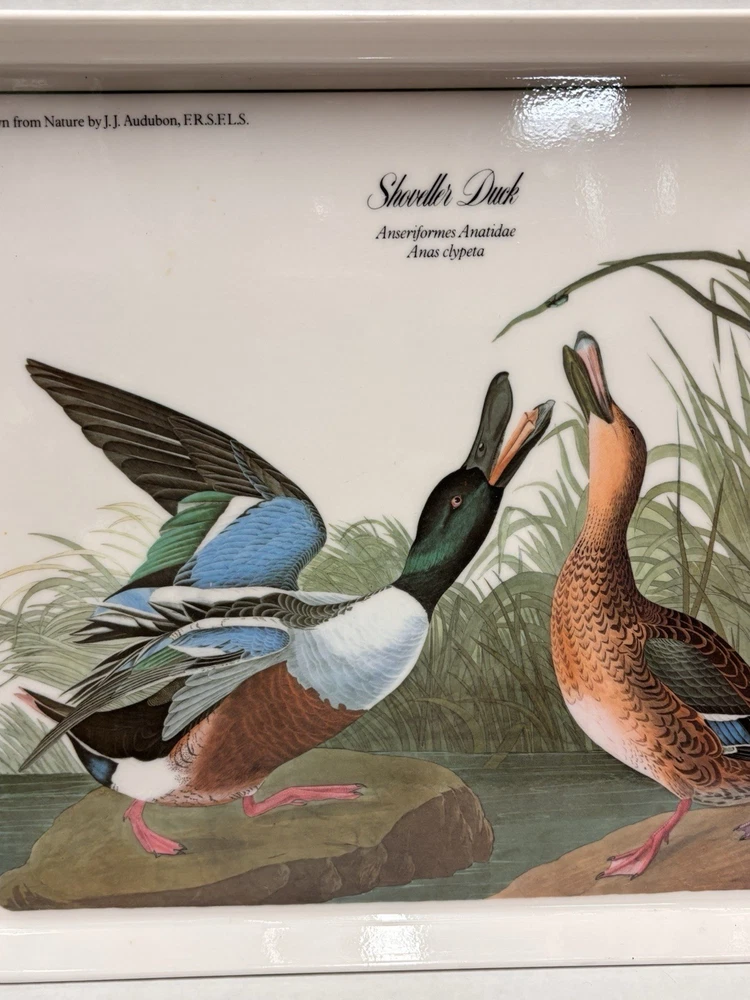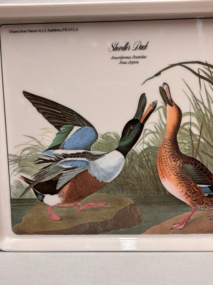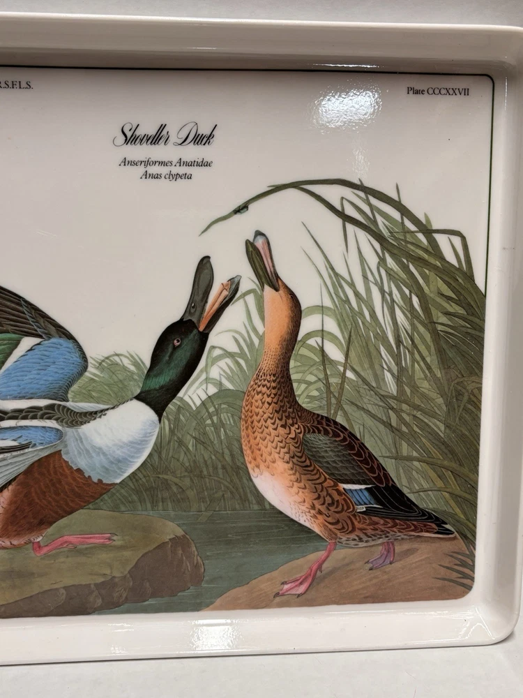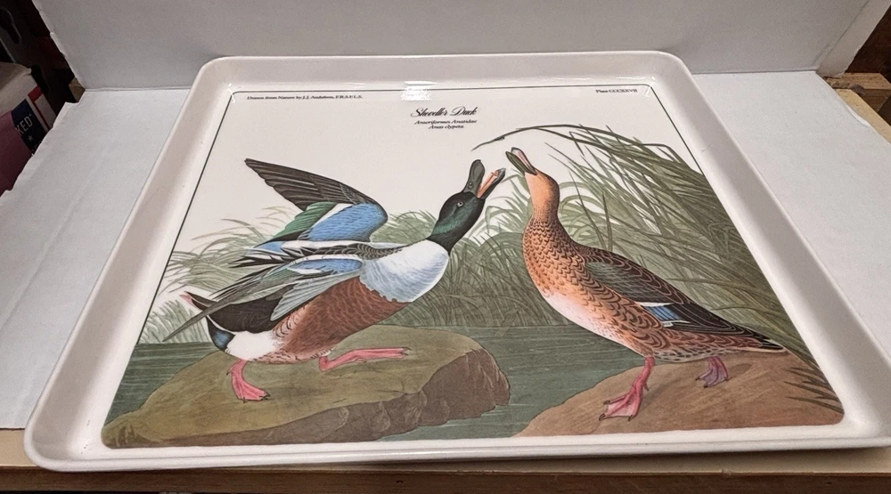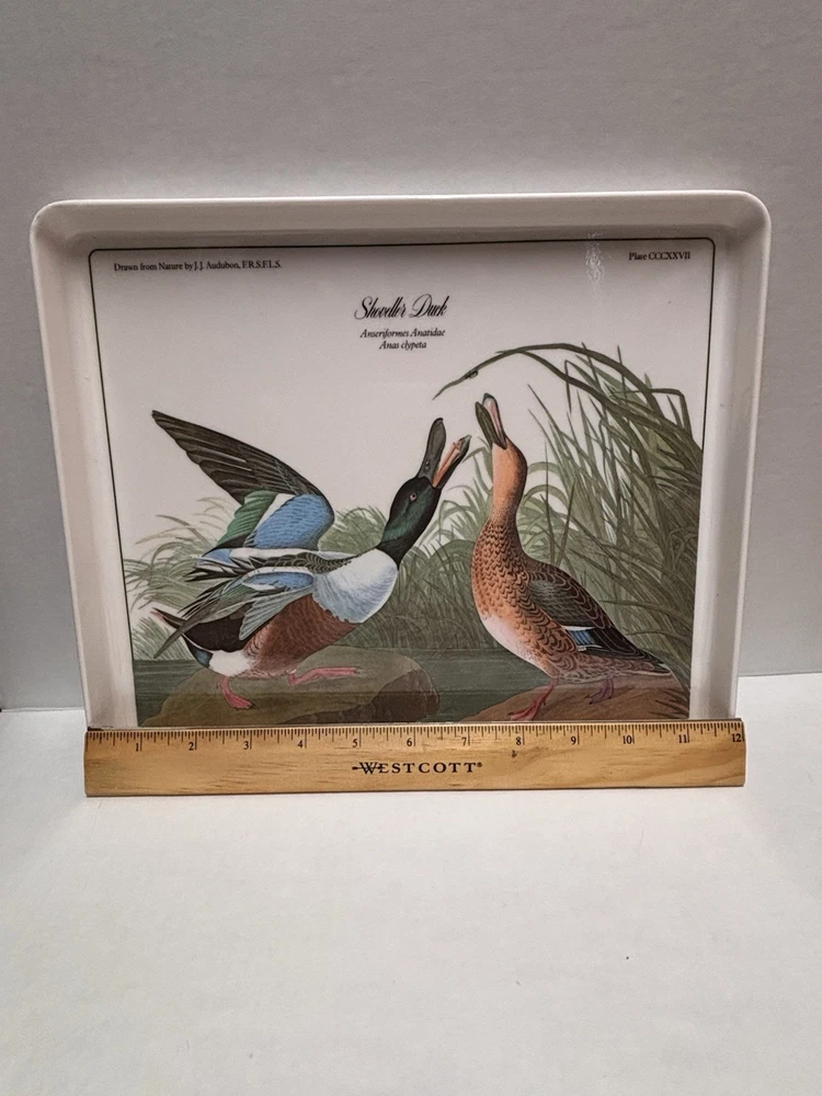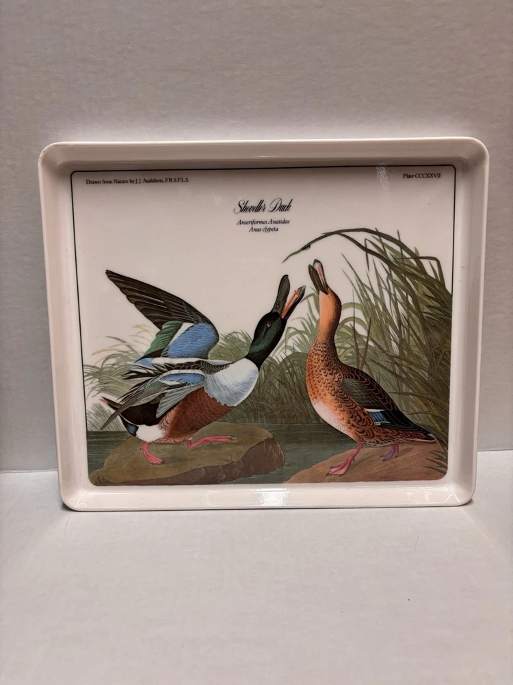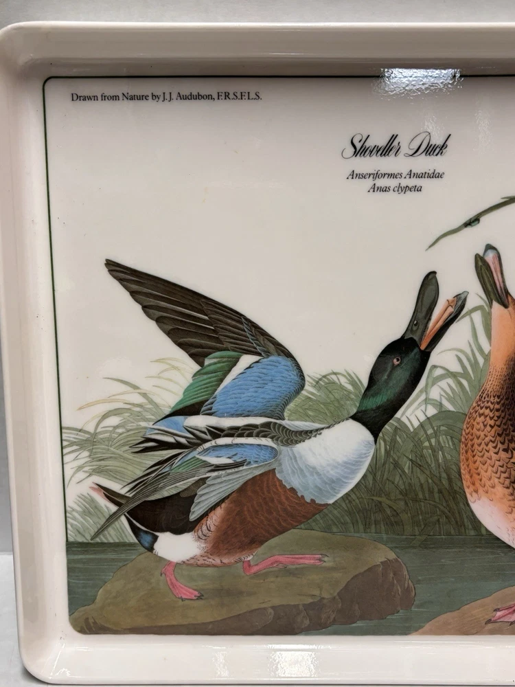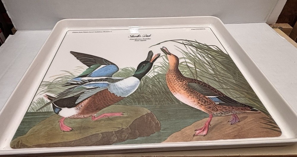 Elevate your serving collection with the Vintage JJ Audubon Melamine Bird Shoveller Duck Serving Tray Plate. Crafted in Italy, this medium-sized, rectangular tray showcases a charming duck pattern that brings a touch of country style to any table setting. The multicolor design adds a vibrant flair, making it a delightful choice for those looking to serve meals with a rustic yet sophisticated appeal. Design Imports has created a piece that combines functionality with elegance. Made from durable melamine, this serving tray is designed for everyday use and is easy to clean, ensuring that it remains a staple in your home. Its tray feature allows for convenient transportation of food and beverages, making it as practical as it is stylish.