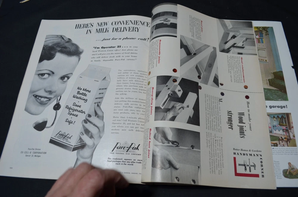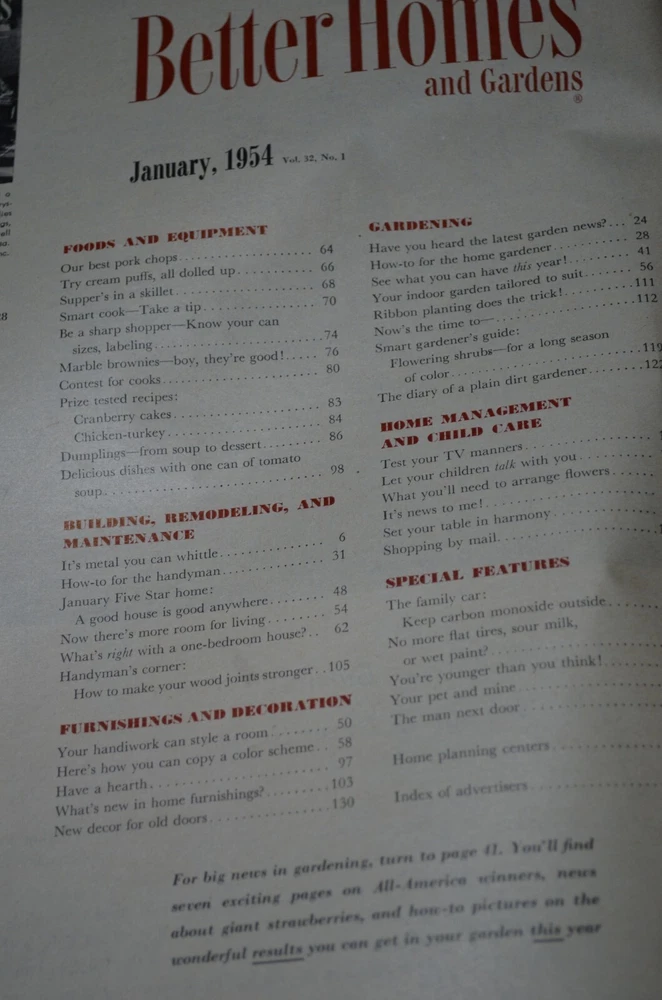 A January 1954 issue of Better Homes and Gardens. This issue is in very good condition. The covers have some shelf and edge wear and the front cover has the space for the shipping label, which looks to have been rubbed off. Binding is sound, but has come away from the ‘glue’ (see photo). Inside pages are good, no writing or marking. 136 pages - great vintage advertisements. Please Note: The best description of this item is the photos – photos are of the actual item you’ll receive. I try to photograph in natural light and describe to the best of my ability ~ however ~ due to different settings on computer/device monitors/screens, please allow for color variations. I have shown a photo of any defect or any positive attribute that I think may be important. Any questions, please ask ~ I will answer as quickly as possible. This item comes from a smoke free home, but it does not come from a pet free home, however has been stored out of reach of any pets. I cannot guarantee what conditions the item was exposed to prior to my ownership. Delivery to APO/FPO may be delayed. Shipping information : Item may ship in tyvek or bubble/padded envelope.