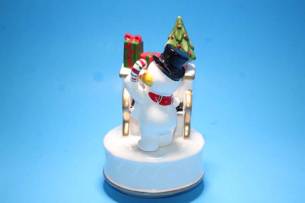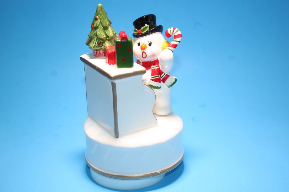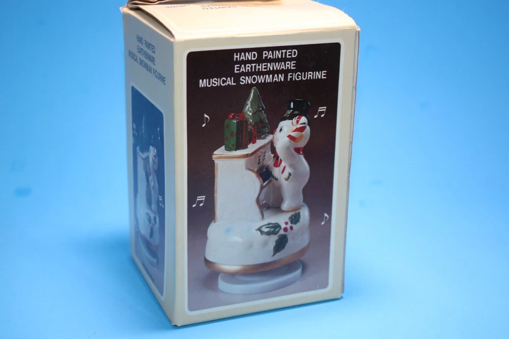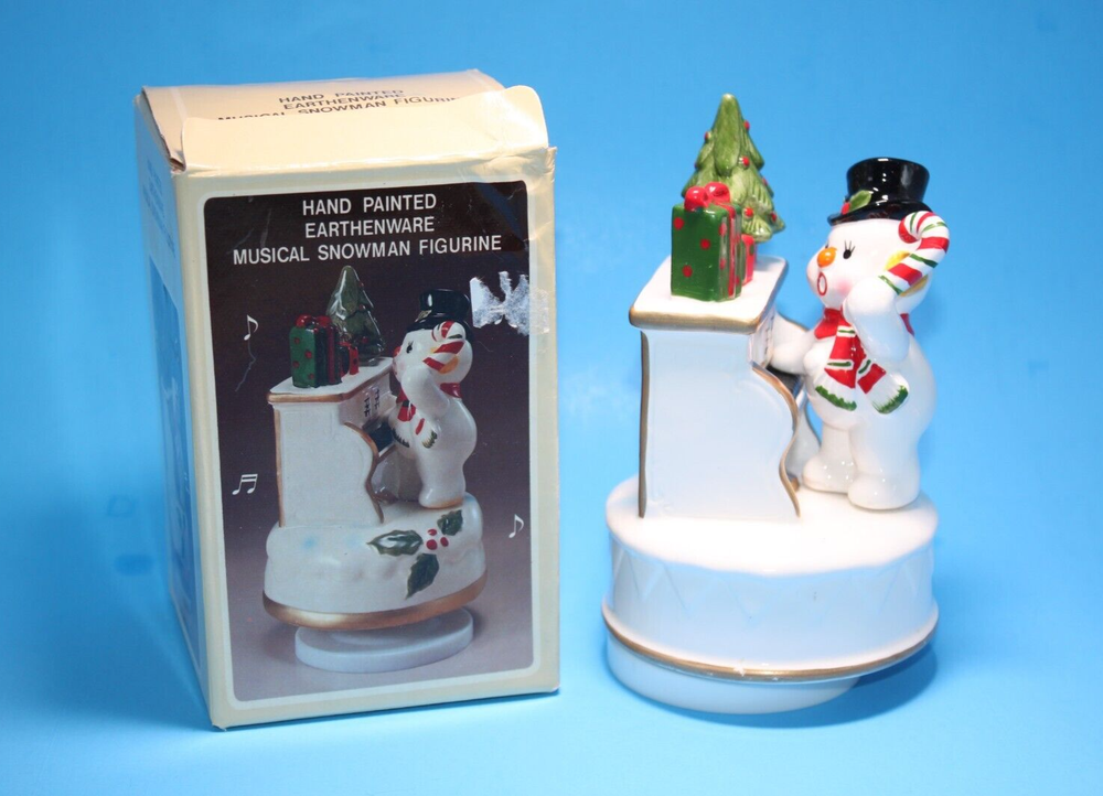 Vintage Japan Earthenware Musical Wind Up Snowmen Plays Frosty the Snowman Jingle with box. From the 70's? Not sure of exact year date. Made in Japan. Wind up music box still plays music, but Selling "As-is" due to age. See pictures and video as part of description. Purchase with confidence.