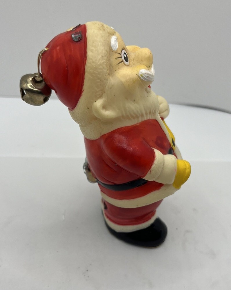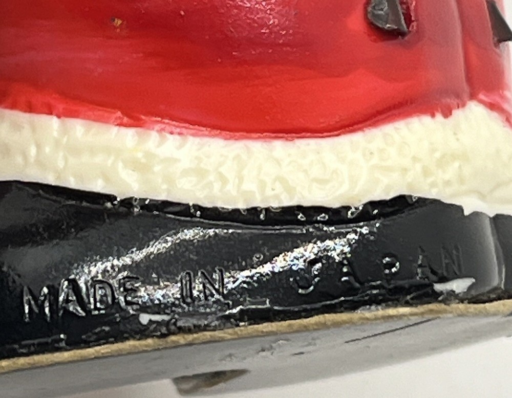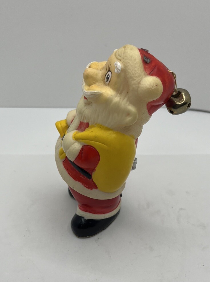 This vintage Japan mechanical Santa Claus wind-up toy is a perfect addition to your collection. The toy measures 6 inches in length and is made of plastic material. It features a red color and depicts Santa Claus, making it a great Christmas gift for children or collectors alike. This toy does not work. If you’re good at tinkering you maybe to fix. The figurine is from the 1950s and has a mid-20th century style. It is a part of the Toy Works brand and was manufactured in Japan. The item does not work and is sold as a collectible. It is a great piece for anyone who loves vintage Christmas decorations and is interested in collecting figurines.