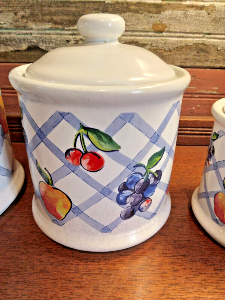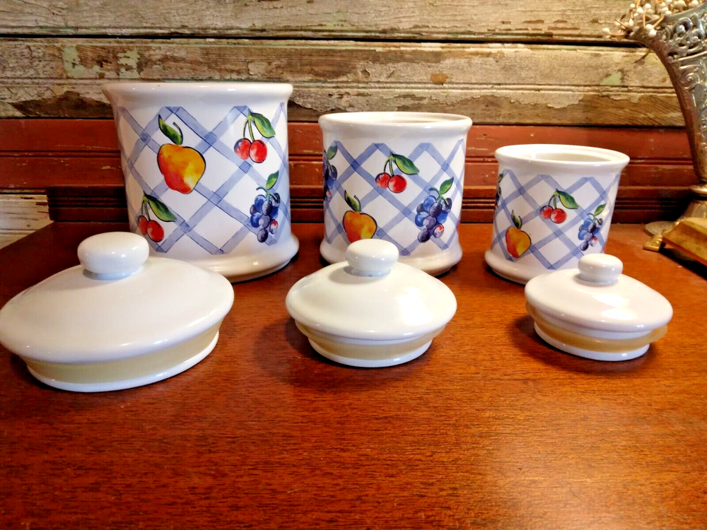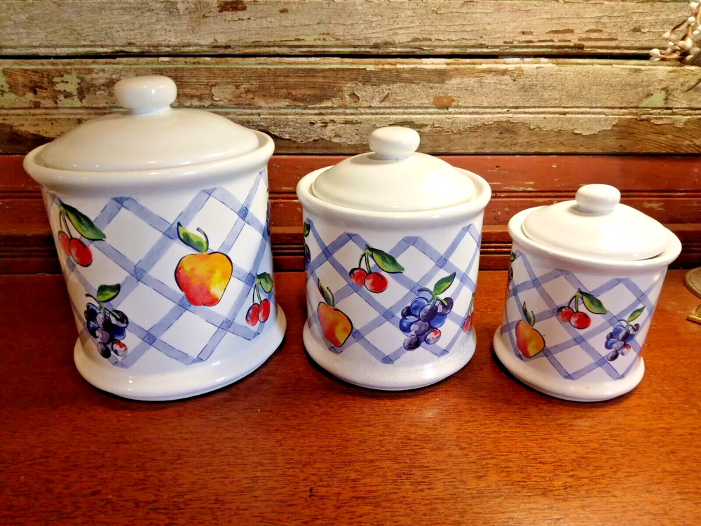 Vintage Jay Imports Ceramic Canister Set ~ 3-pc with Lids ~ Fruit Design ~ 7", 6" and 5" Tall. Beautiful and gently used. I have the matching mini casserole dishes with lids listed as well! Most china I sell is used, vintage, brands and patterns that are sometimes discontinued and is not in brand new condition, not mint or near mint unless otherwise specified. It may have scratches, marks, crazing, glaze flaws, trim wear, stains and general wear. Some items we sell have general wear consistent with age and other items do not show their age nearly as much. If you are expecting brand new china , please do not purchase . Please contact us directly for any questions, concerns or issues with condition , shipper/carrier delays, etc. and we will work to resolve . Opening a case will only delay our ability to quickly resolve any issues you might have. We strive for 100% customer satisfaction and have an excellent track record . Purchase with confidence. For USA buyers outside the continental USA there may be an additional cost for shipping. Please contact us for the estimated shipping cost. For international buyers our estimated shipping cost is to EBAY's National Shipping Center on the American east coast. EBAY will provide you the additional cost to ship to your location. We sell "used" items in most cases, sometimes new. There are however some items manufactured in previous years that were never used. If such an item is in excellent condition and still has an original price tag, original packaging and in some cases the original box we will show it as a new item but describe it as "new old stock" . We obtain our items through estate sales, storage sales, individuals, auctions and various other means . We sometimes do not know the history of the items we obtain as to how it was stored, who previously owned it, etc. Items are generally unique but we do buy multiples in some cases. We do research every item but are not experts on every item obtained. We do our best to describe each item accurately. USED CHINA AND DINNERWARE HAS NOT BEEN THOROUGHLY WASHED. PLEASE WASH BEFORE USING. NOTE: I describe and post photos of my items as best as possible and do not try to represent myself as an expert on anything that I sell . I am an honest seller and if I see a flaw, I will point it out and try to post a photo for your review and consideration. Used items are not perfect, not mint or near mint and can have scratches, marks, crazing, glaze flaws, trim wear, stains and general wear. Some items we sell have general wear consistent with age and other items do not show their age nearly as much. Please review our pictures as they are an important part of our condition description. If you receive an item that is damaged in some way let us know right away as shippers can be very rough on items shipped. Depending on the type of item we try to "double box" sensitive items to prevent damage. In many cases carefully wrapping the item in bubble wrap or other wrapping is enough protection . IF ANY SHIPPING DAMAGE OCCURS WHEN MULITIPLE ITEMS ARE SHIPPED TOGETHER, INCLUDING SETS, INSURANCE ONLY PAYS FOR THE DAMAGED ITEM ONLY.. NOT THE ENTIRE SET. YOU WILL ONLY BE REFUNDED FOR THE DAMAGED PIECE ONLY. THE AMOUNT OF REFUND WILL BE DETERMINED BY DIVIDING THE NUMBER OF PIECES SHIPPED BY THE SELLING PRICE. REFUND WILL NOT BE BASED ON SIZE OF THE DAMAGED ITEM . I ship in recycled packaging when possible to reduce waste. If there is a problem, please contact me before leaving feedback. SHIPPING: I SHIP GLASS, CHINA AND OTHER FRAGILE ITEMS VIA FEDEX.