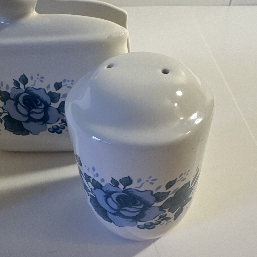 This vintage set from Jay Imports Co. includes a fruit-themed napkin holder and salt & pepper shakers. Made of ceramic, this country-style set is perfect for all occasions and adds a touch of color to your kitchen. The round shape and multicolor pattern make it a unique addition to your collection. The set includes three items: a salt shaker, pepper shaker, and napkin holder. This original 1990s design was manufactured in China and is a great find for collectors. It's perfect for adding a rustic touch to your kitchen decor.