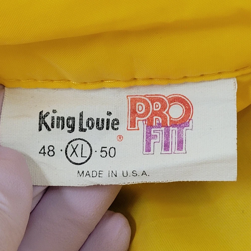 Love this vintage King-Louie windbreaker! The bright yellow color is eye-catching yet timeless, and the fit is perfect—lightweight but sturdy enough for breezy days. No flaws, just gentle fading that adds to its retro charm. Great for layering or showing off old-school coach style. A must-have for collectors or anyone who loves classic sportswear. Super comfy and feels well-made. Happy with this find!