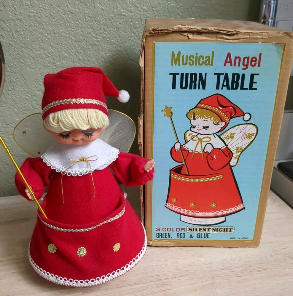 VINTAGE Kitschy Whimsy Musical Angel Turn Table Wind Up Music Box Japan Silent Night *see all photos as they are a part of the description* note the star wand is loose and would just need a dab of glue to keep in place should you wish to do so. Everything else is in super clean vintage condition! **Original Box**