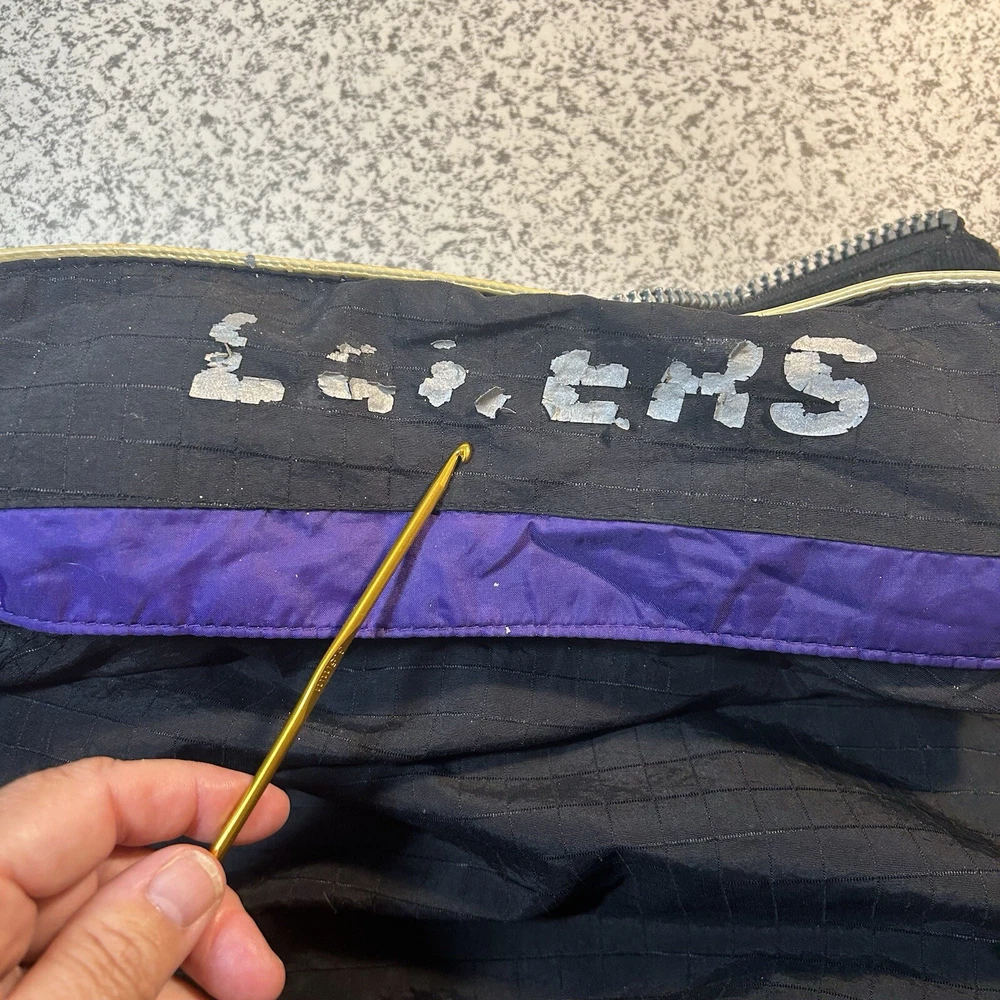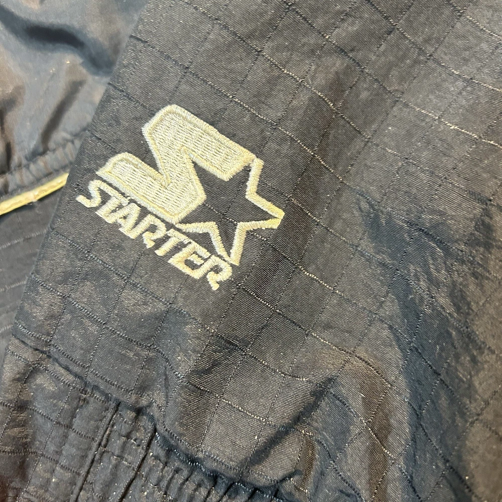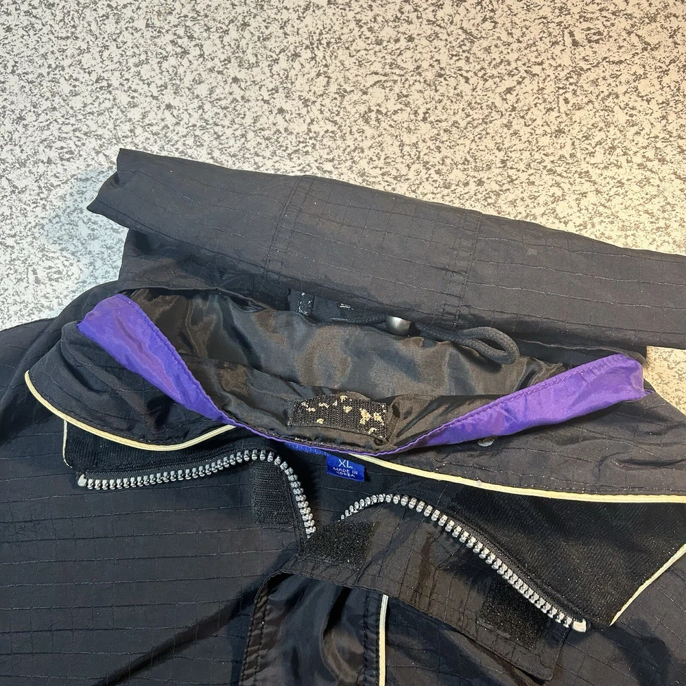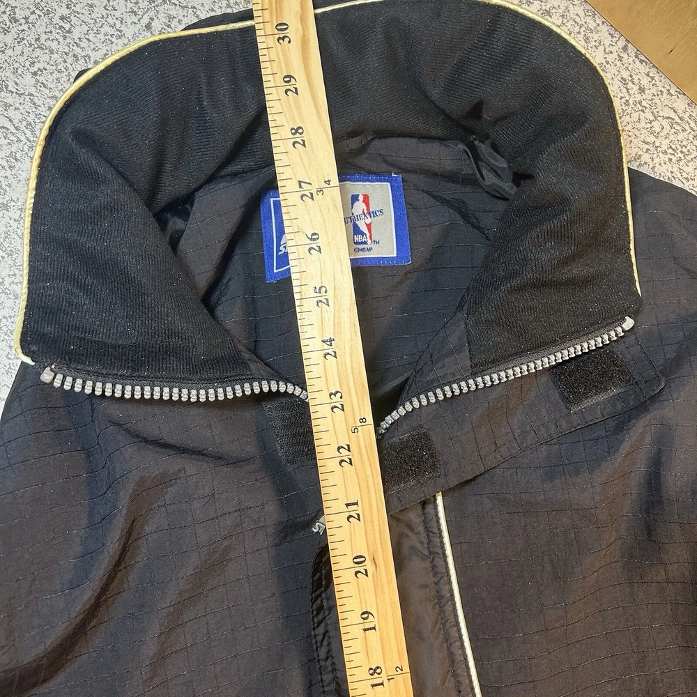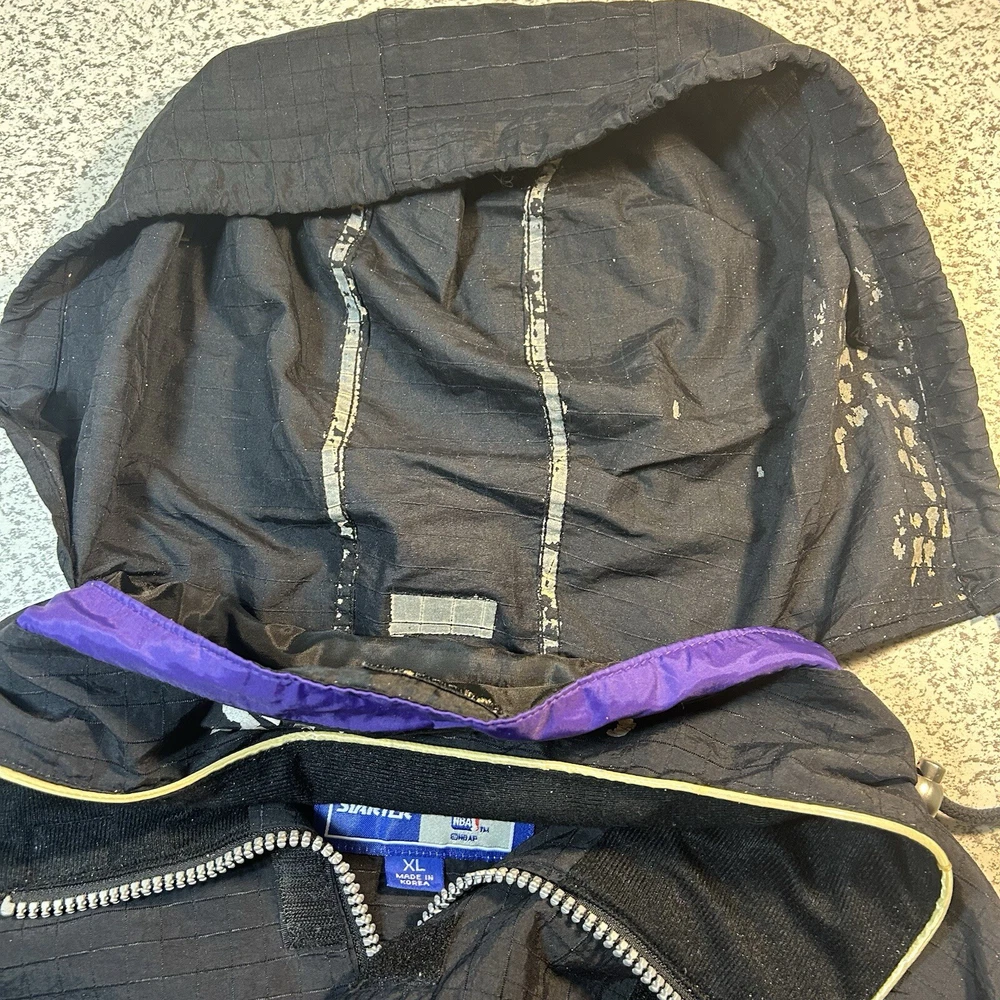 Show your support for the Los Angeles Lakers with this officially licensed L.A. Lakers 1/4 Zip Wind Breaker Jacket by Starter. This unisex adult jacket is perfect for basketball fans and is made with high-quality materials. The jacket features a hidden hood and is designed to keep you warm and comfortable during regular season games. The black windbreaker jacket is size XL and is perfect for fans of all ages. It is made in Korea, Republic of and is a must-have for any L.A. Lakers fan. Whether you're cheering on your team at the game or just showing off your team spirit, this jacket is the perfect addition to your collection. Overall Very Good Condition - Damaged Logo (back Hood area) Wear/Damage hood lining - See Photos - We ship quickly - PLEASE NOTE - Vintage and prewashed Clothing Often runs SMALLER than Modern sizes... Please reference photos for accurate measurements/sizing - Contact us for any issues or questions