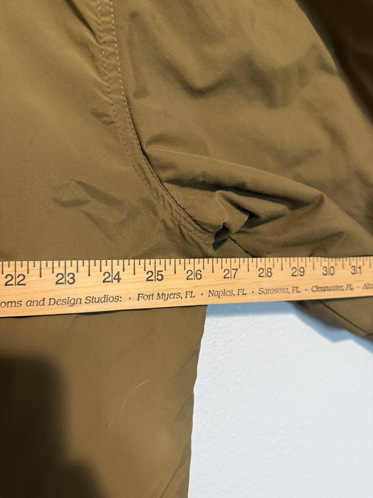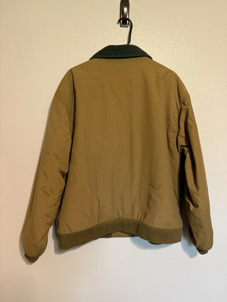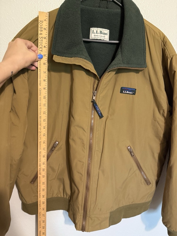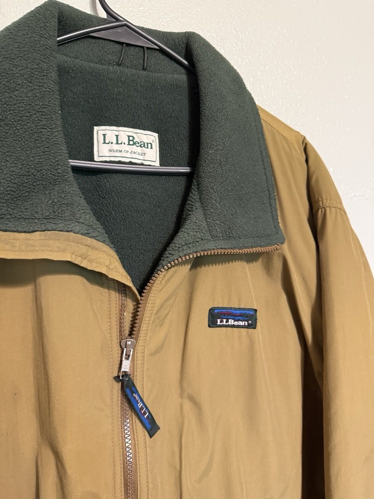 This Vintage LL Bean Warm Up Jacket is a classic American made jacket suitable for all seasons, with a relaxed fit and wind-resistant features. The brown nylon outer shell with green polyester lining provides warmth in winter and spring, making it ideal for casual outdoor activities like walking and hiking. The jacket also includes convenient pockets and a stylish zipper closure, reflecting the brand's quality craftsmanship. Perfect for those looking for a hipster, outdoor-inspired piece with a timeless, sporty design. Overall in great shape for age with some minor markings and wear. See measurements.