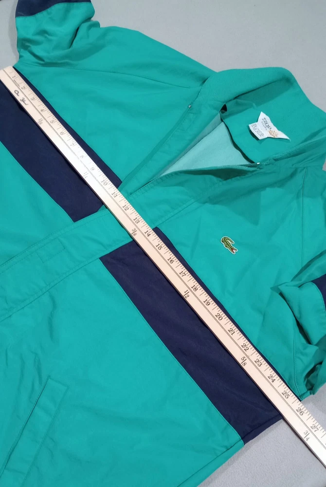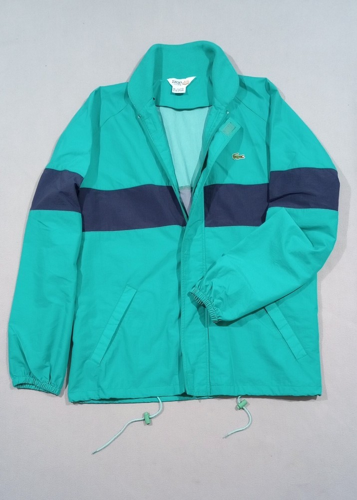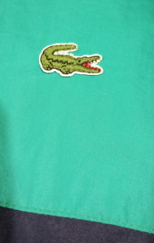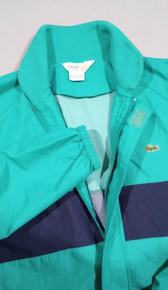 Vintage Lacoste IZOD Club Jacket Wind Breaker 80s Green Blue Full Zip Size Large Pre-owned Good Condition Note: This vintage item has been washed and has a small stain on the inside of the jacket. Otherwise, it is in good condition. Please see the attached images for a better idea of its condition.