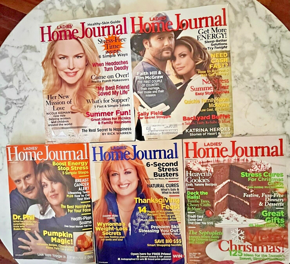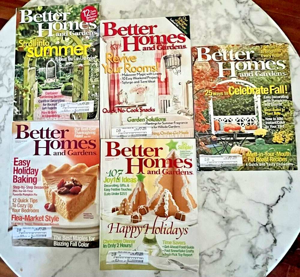 Vintage Collection of (21) Ladies Home Journal & Better Homes & Gardens from 2006 Included are the following: Ladies Home Journal JAN / FEB / MAR / APR / MAY / JUN / AUG / OCT / NOV / DEC Better Homes & Gardens JAN / FEB / MAR / APR / MAY / JUN / JUL / SEP / OCT / NOV / DEC CONDITION: (15) issues are rated as VERY GOOD and most (in this group) show minimal signs of previous use. (6) are downgraded to GOOD due to cosmetic damages primarily confined to the covers. (Please see close ups in last photos.) Personal info on labels will be deleted with a white dry liner prior to shipping.