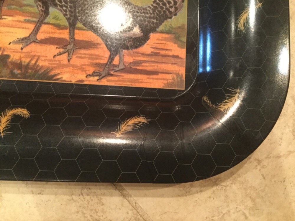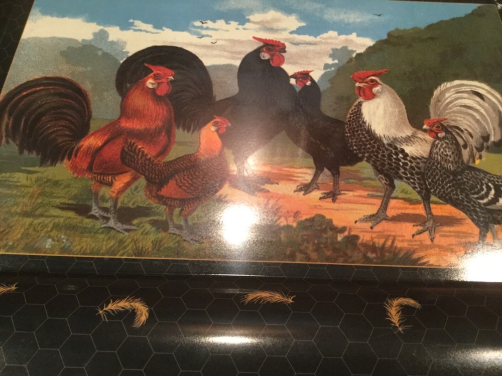 Vintage Rooster and Hen Serving Tray by Design Imports of Italy---- 23" W x 17" H Tray was. A store display model Handled but never used.. Deep rich colors, Roosters and Chickens looks nice on a wall, shelf or cabinet for decor Thought you might like this one Thanks for looking