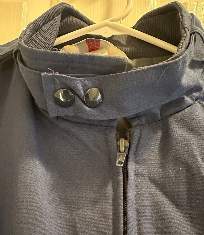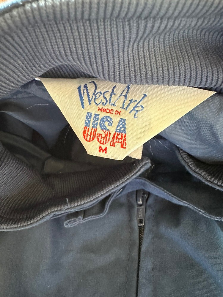 Add some 90s flair to your wardrobe with this vintage windbreaker jacket from Active Generation! The medium-size jacket features a polycotton outer shell in a stylish blue color, with a zip and snap closure for added convenience. The jacket is also lightweight, packable, and wind-resistant, making it the perfect choice for fall and spring weather. This unique jacket also boasts a full range of features, including pockets for storage and a nylon lining material for added comfort. And with its vintage look and 90s theme, you can be sure that you're making a fashion statement wherever you go. Don't miss out on this must-have addition to your collection! Small stain on collar (see pic)