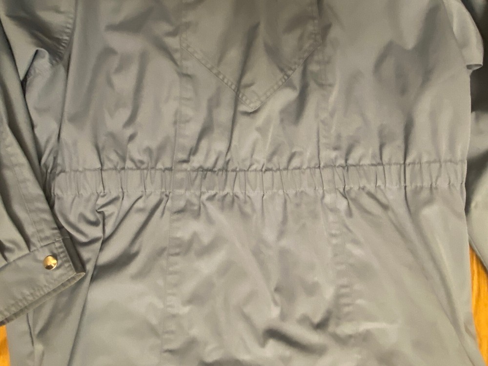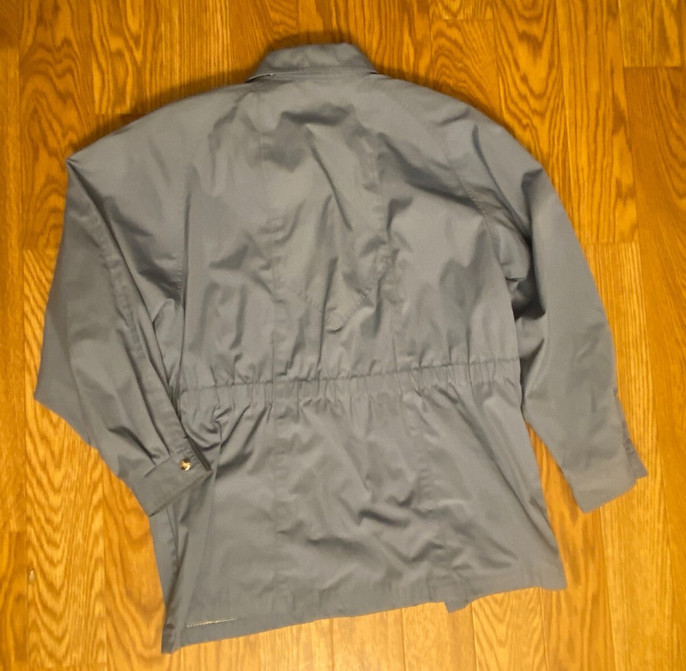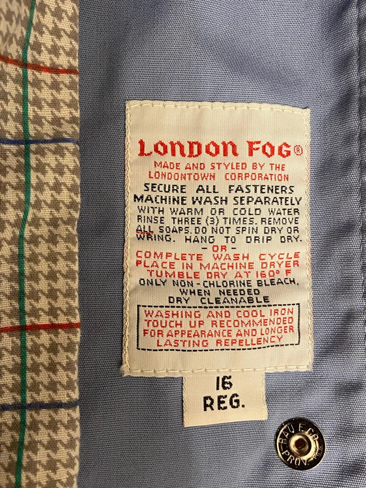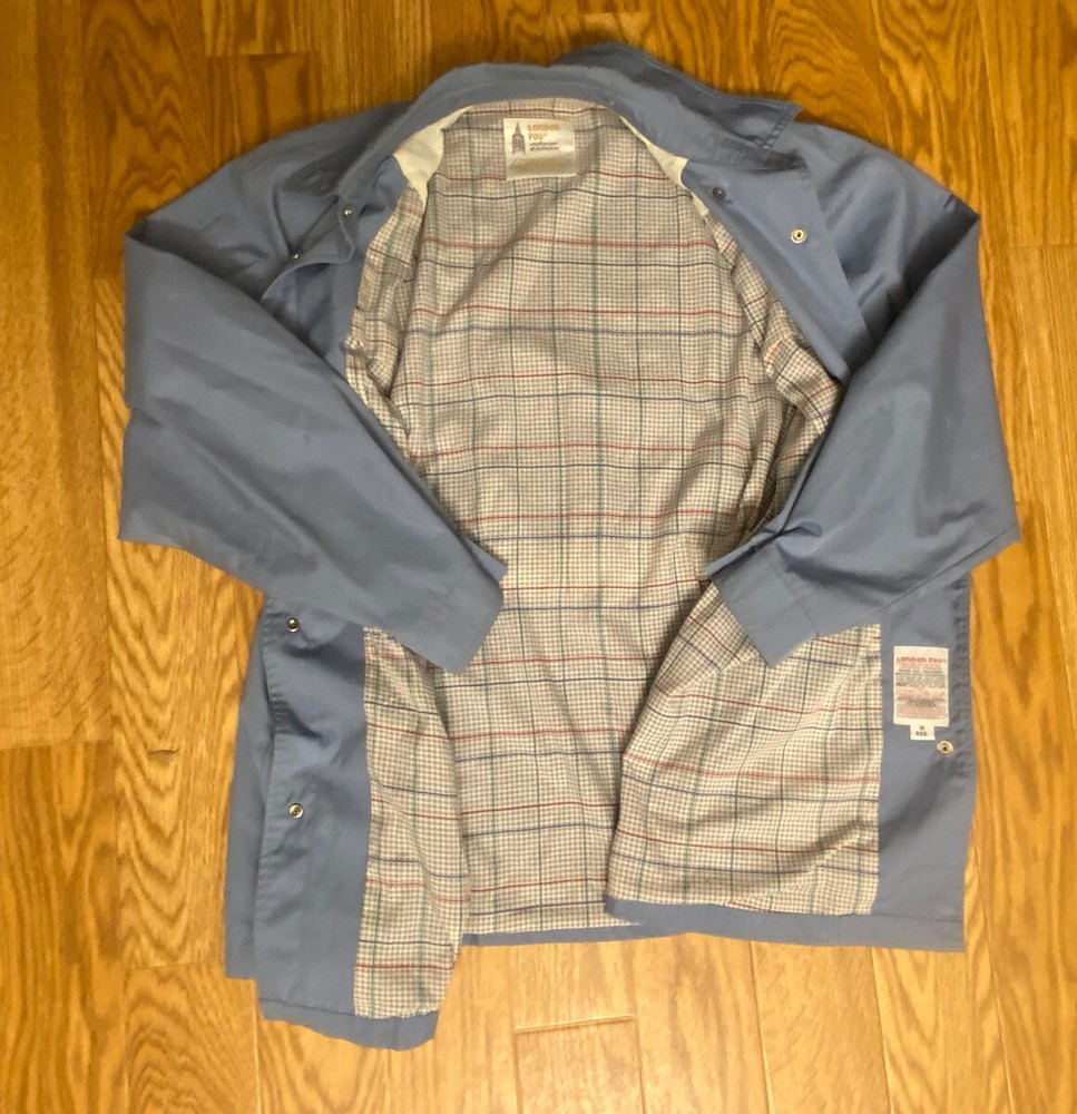 This Vintage London Fog Men's Rain Coat is perfect for any season. The blue polyester outer shell material is water and wind-resistant, with a solid pattern and button closure. The jacket also features cotton lining material and accents on the buttons. With a size of 16 and regular size type, this classic raincoat is suitable for men of all sizes. It is machine washable and easy to maintain. The jacket is perfect for all seasons and weather conditions, making it a must-have for any wardrobe. Great condition- No Hoodie