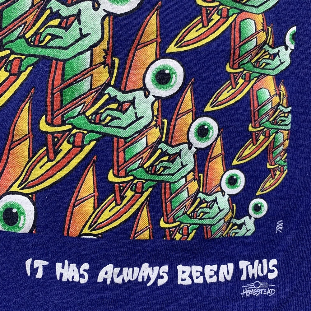 This vintage surfer shirt is a total gem! The bold Festoons 2002 Wind Ceremony graphic still pops, and the blue color is so vibrant. The large size fits perfectly, and the fabric feels broken-in but not worn out—just that cozy vintage softness. Love the long sleeves for layering, and the condition is honestly better than expected. Super stoked to add this to my collection—definitely a unique find with major retro surf vibes. Seller was spot-on with the description and care, too!