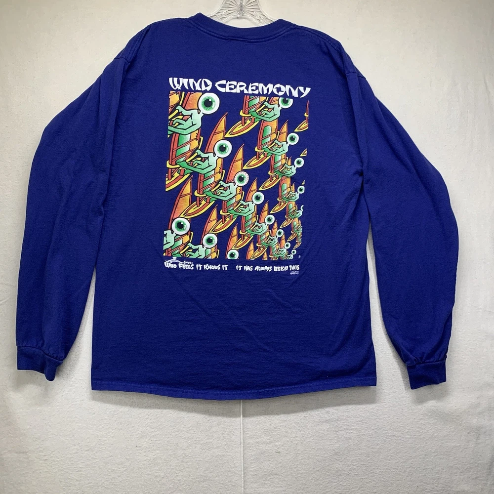Vintage Long Sleeve Surfer Shirt Festoons 2002 Wind Ceremony Blue Size Large AMAZING GRAPHIC In excellent condition MEASUREMENTS SHOWN IN PICTURES 📏 We take pride in providing quality goods for our clients/buyers! Any flaws or defects will be shown in pictures. All of my items are either Vintage or pre-owned and may have have some defects due to the age of garment. Please read, see pictures, or ask questions before bidding. Item has been gently laundered for your protection and professional cleaning or sanitation is always advisable. If you are new to Ebay, an email that you have read details on the listing would be greatly encouraged. If you ever have a question, comment or concern please feel free to message us. Enjoy! - vlecko