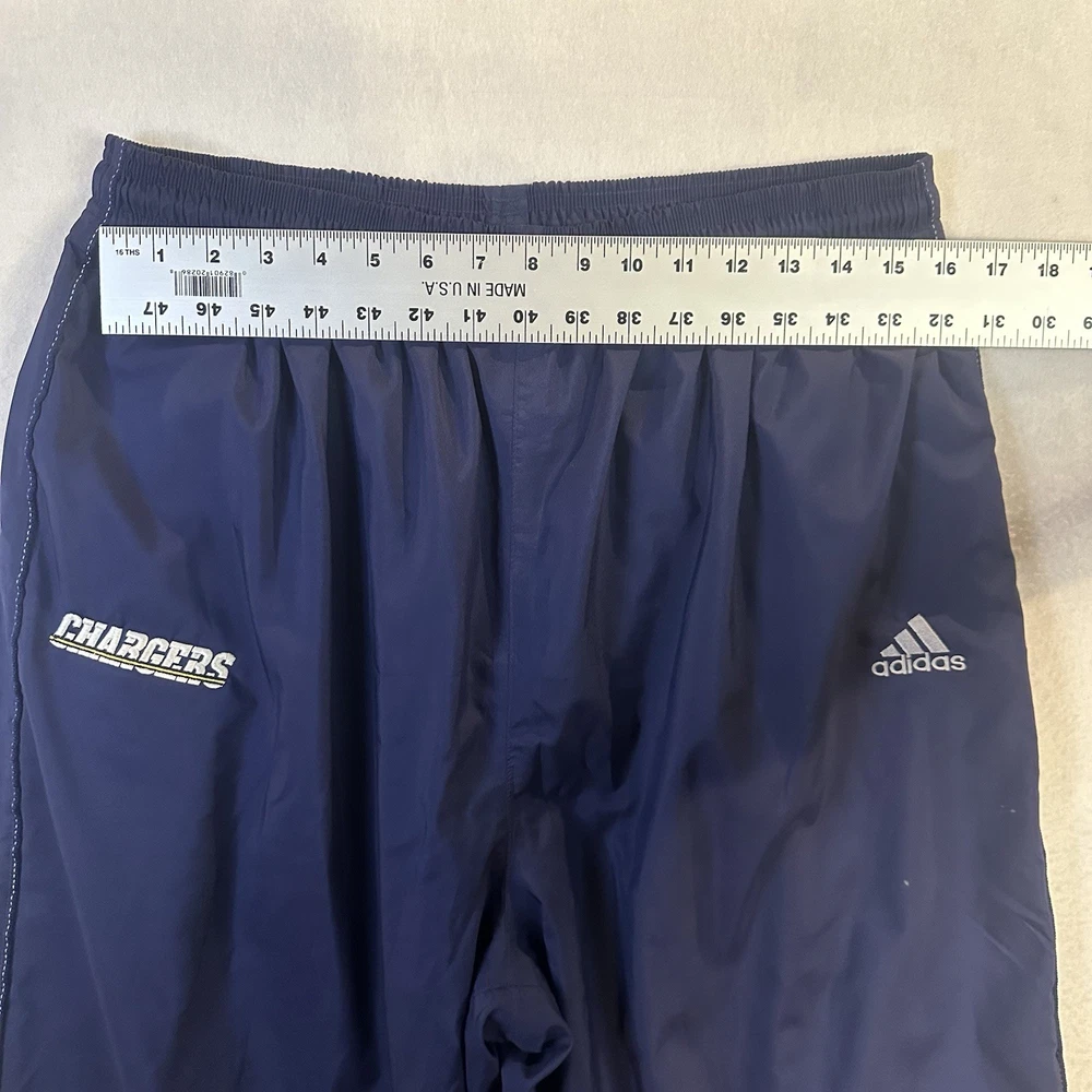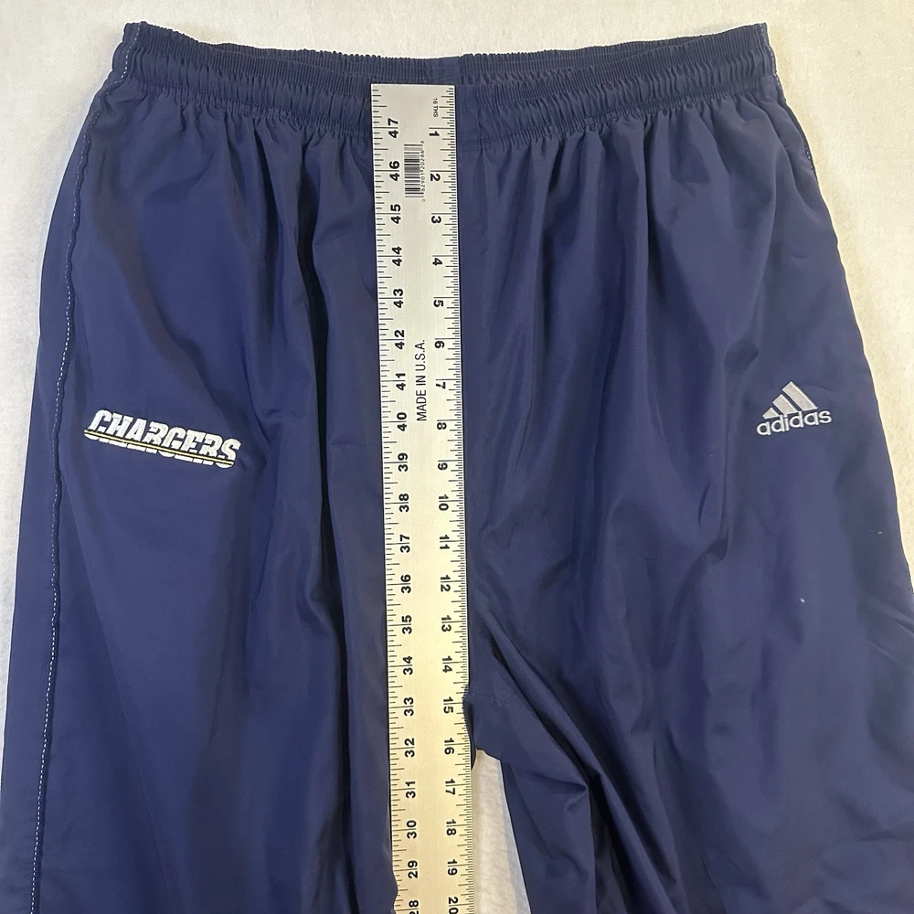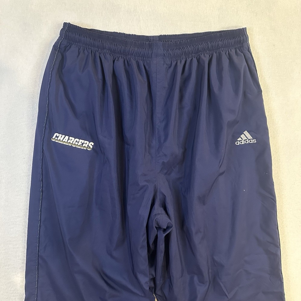 Vintage Los Angeles Chargers Adidas Pants Mens XL Mesh Lined Wind Track NFL Y2K Great Condition! Small spot shown in the photos. Condition is exactly what is shown in the photos! Use the zoom in feature to see all angles of the item! Comes from a smoke free home! Size: Men's XL All measurements are included in the pictures! Feel free to message me with any further questions! Thank you for shopping with me! Please leave me with any questions you might have. As always, every item is shipped and handled with care!