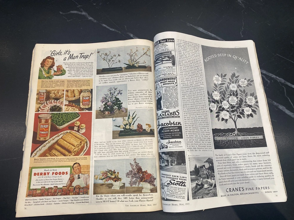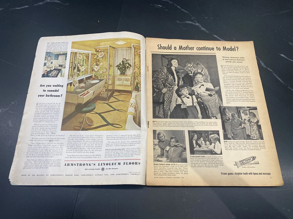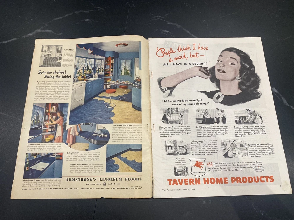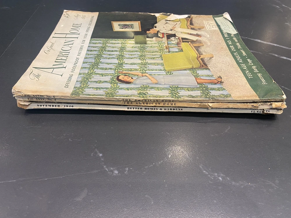 VTG Magazine Lot of 3: The American Home x 2 Better Homes And Gardens x 1 Really cool magazines for “set dressing” of your vintage home or office. I wish I could keep them but really don’t have the right place to display them. They lived on an end table for a few years at my last apartment and then went into storage. Was fun looking at them again while taking pictures! Please expect signs of wear, stains, folded corners, tears, water damage, possible writing and more. These are over 75 years old. Zoom in on photos and if you need more please let me know. Thanks for looking and for continuing to help me de-clutter now that I made the big move.