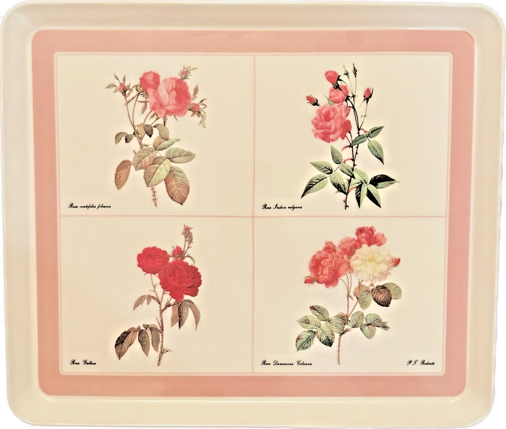 Vintage Melamine Serving Tray Roses Botanical Shabby Chic Cottagecore Italy 90s This lovely melamine serving tray has a beautiful design featuring roses on a white background with a pink border. Made in Italy by Design Imports LTD. Tray has been carefully and thoroughly cleaned and inspected for damages. Measures 10.5" x 12". Perfect for drinks, appetizers, finger foods for a picnic, garden party, shower, or any special event. Very strong, yet lightweight material. Please review all pictures for detail, design and condition. I am happy to answer any questions so that you can purchase with confidence! Quick ship from my smoke free home. Thank you for looking!