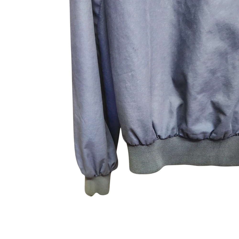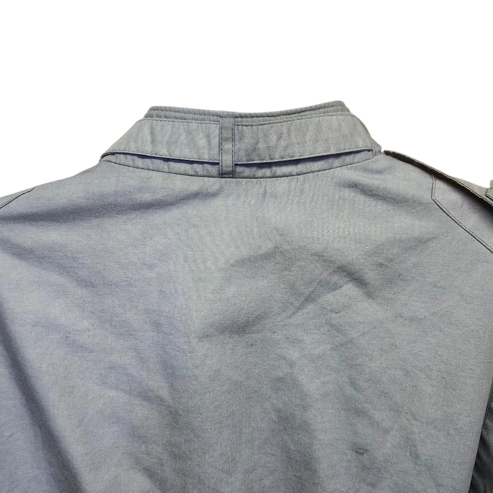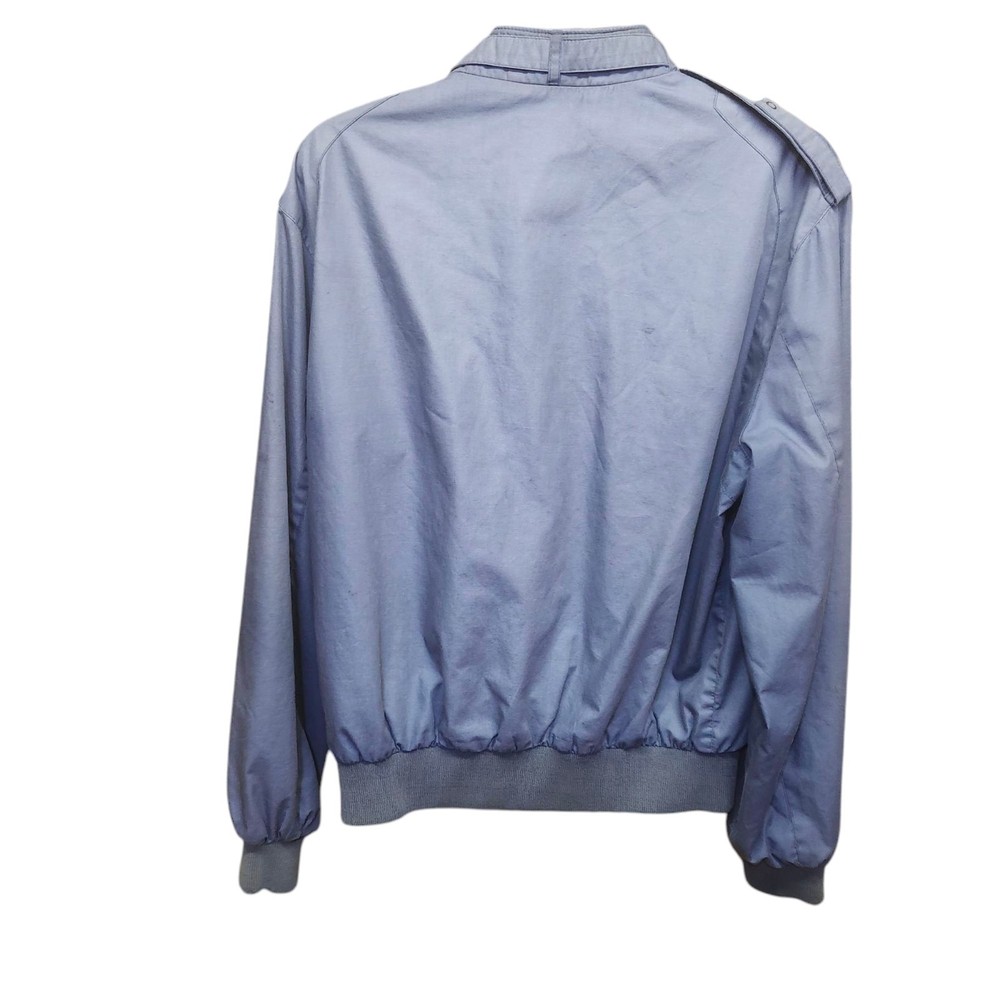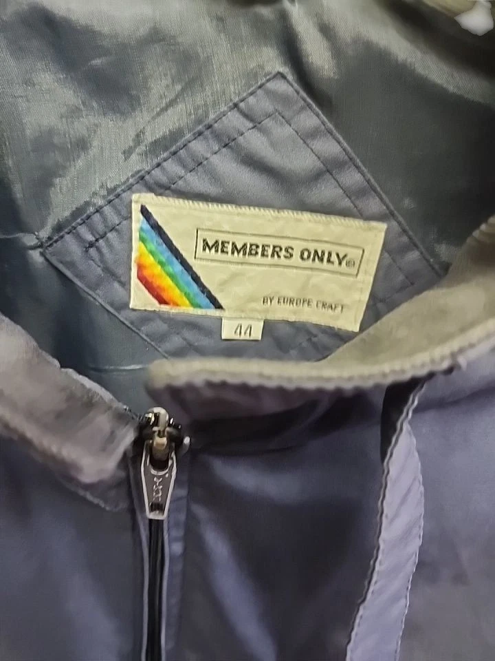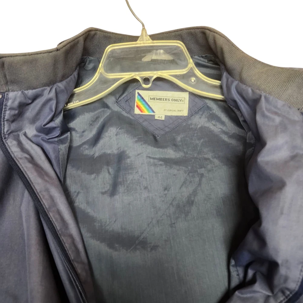 The Members Only Cafe Racer Jacket is a vintage bomber jacket made by Europe Craft in the 80s. It features a solid navy blue color with a classic fit and a band collar style. The jacket has a polyester blend outer shell material and a polyester lining material, making it wind-resistant and suitable for all seasons. The jacket has a zip and snap closure, with elastic waist and knit cuffs waistband accents. It is machine washable and comes in a size M. The jacket is perfect for travel, party/cocktail, casual, and business occasions. The vintage look of the jacket adds to its style, making it a great addition to any wardrobe.