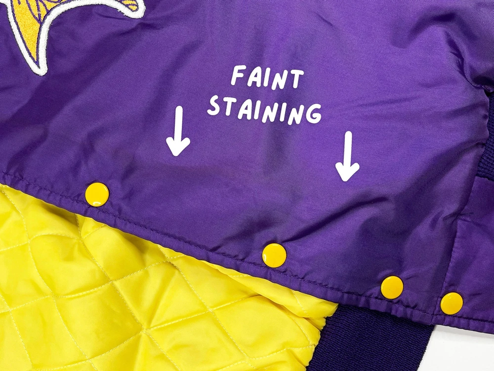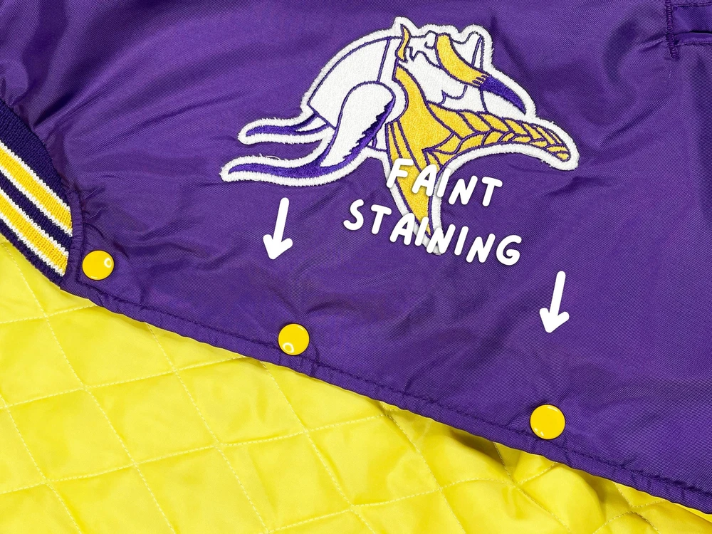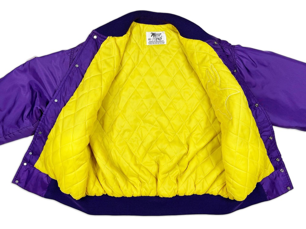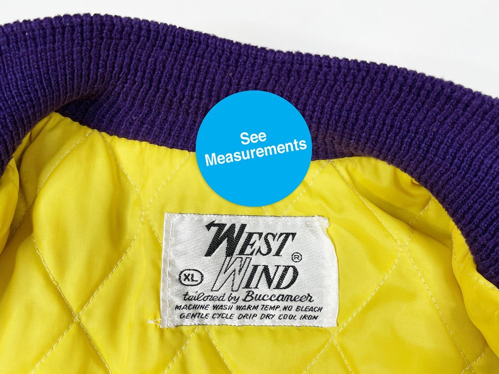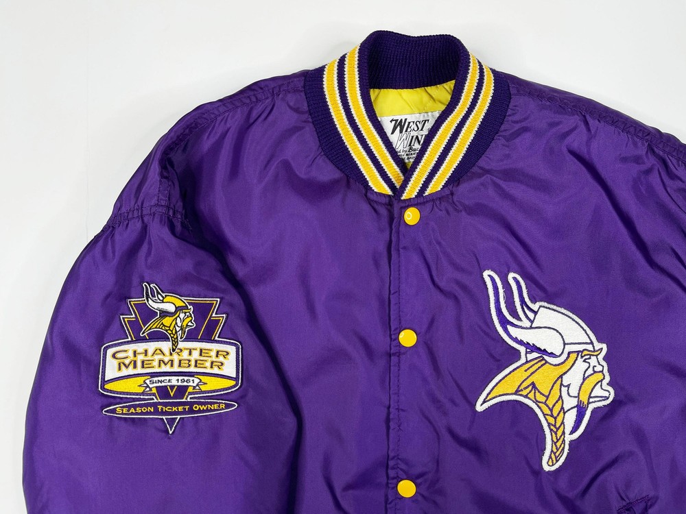 Vintage Minnesota Vikings jacket, from the late 80s or early 90s. Nylon shell with striped trim and embroidered graphics Brand: West Wind Tag Size: XL Measurements: Pit to pit -- 27.5" / Length -- 27.5" Condition: 8/10 -- in decent shape overall with light wear throughout, including some faint staining on the chest. See last 3 pics for details Ships via USPS Ground Advantage. Please allow up to 5 business days for delivery. All sales are final unless item is not as described. Thanks for looking and please send me a message if you have any questions!