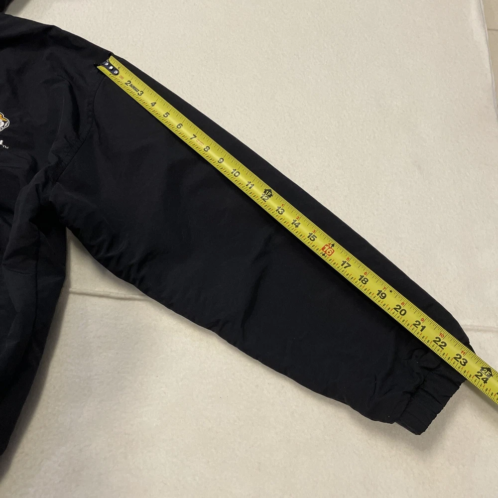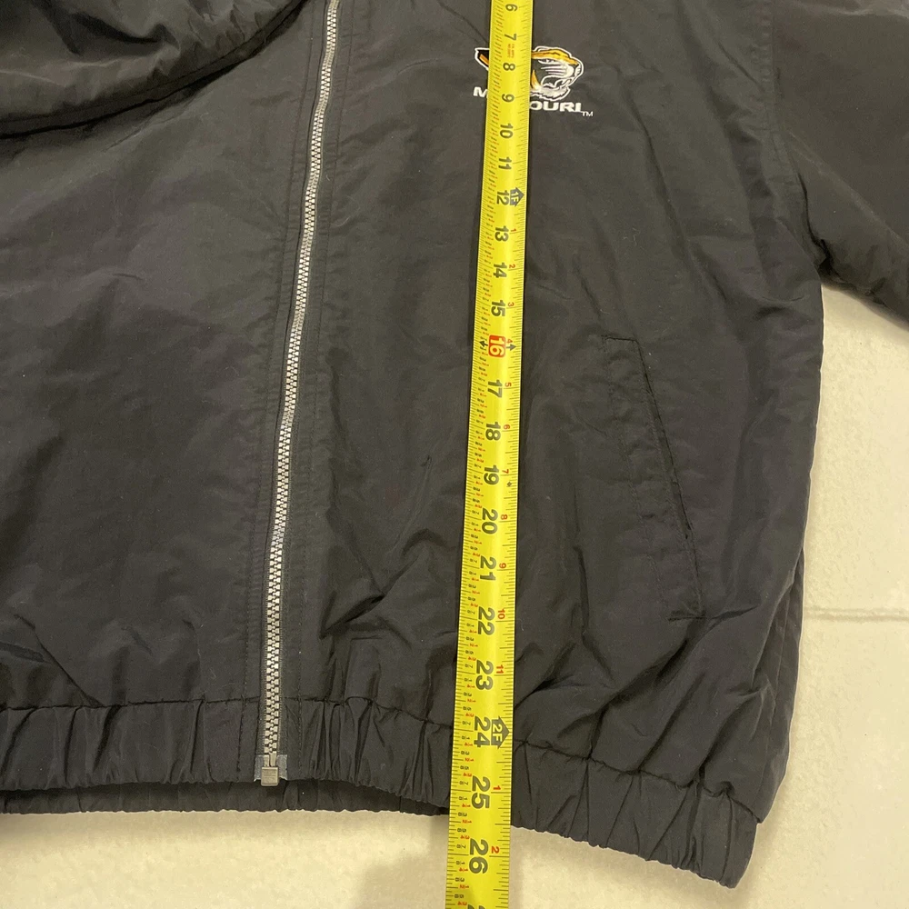 -Used. Sold as is -No rips or stains -See photos for measurements -Fast shipping!!! Show off your team spirit with this vintage Mizzou Tigers coat. Made with softshell fabric and lined with a very soft lining. This parka is perfect for students or alumni who love vintage. Featuring a full zip closure and a hood, this coat is wind-resistant and provides extra protection against the elements. This coat is not only functional but also stylish. It's perfect for casual outings, college events, parties, or any outdoor activities. Don't miss out on this retro college look that's sure to turn heads.