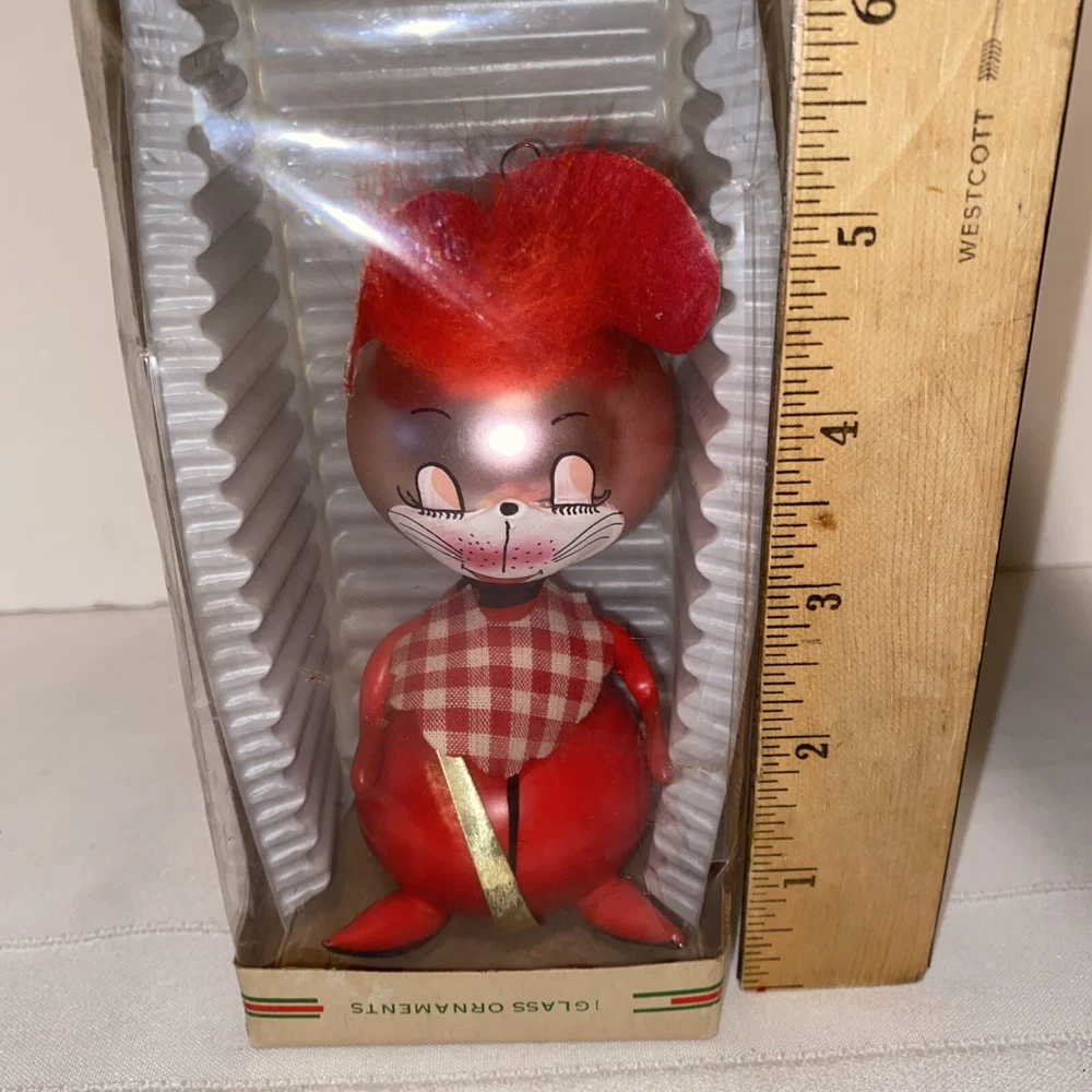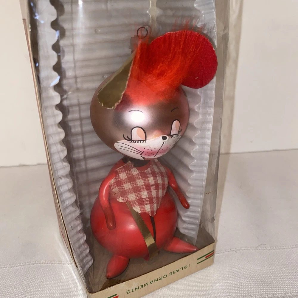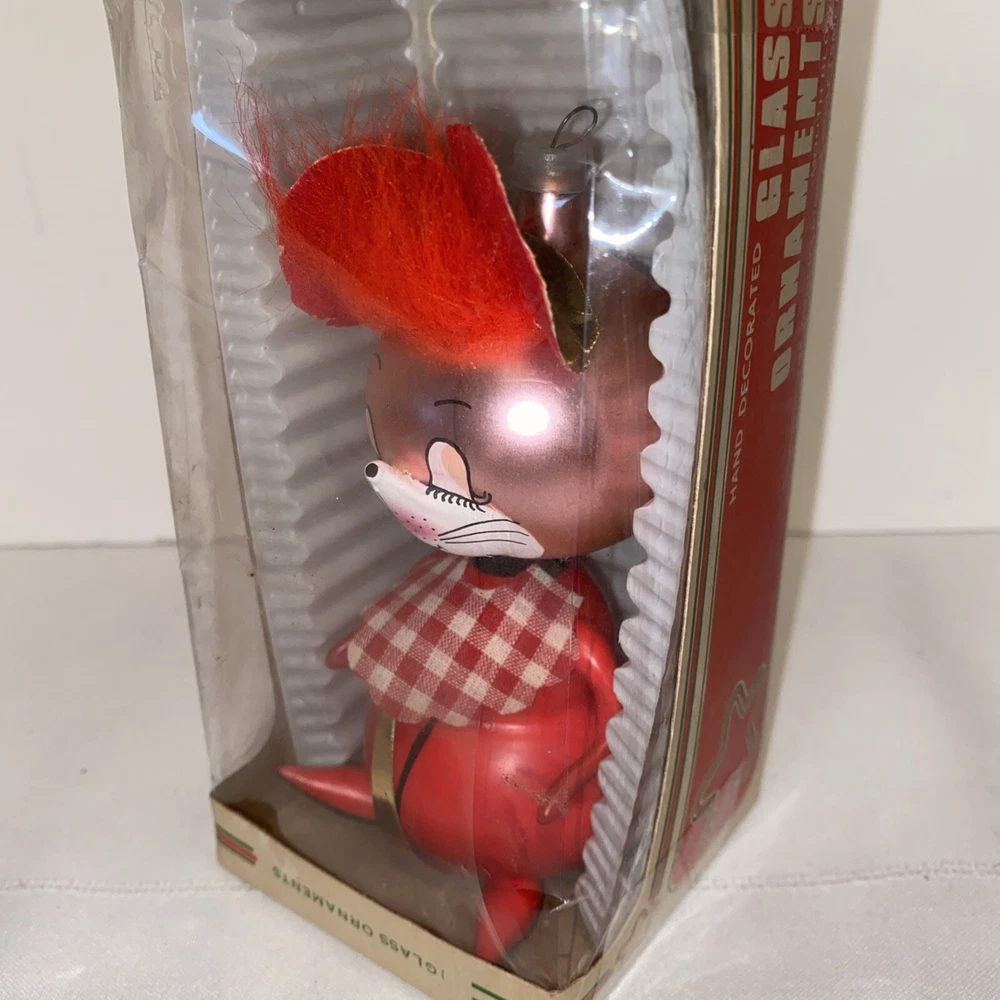 This charming vintage mouse ornament is a delightful find! The mouth-blown details and festive design make it a unique addition to any holiday decor. It’s in excellent condition, just as pictured—carefully crafted in Colombia with a playful touch. Perfect for collectors or anyone who loves nostalgic Christmas pieces. The seller is clear about the item’s history and provides helpful photos for transparency. A wonderful estate treasure!