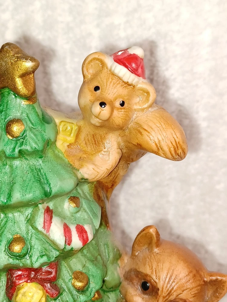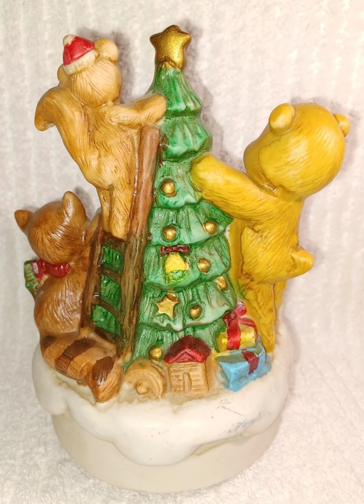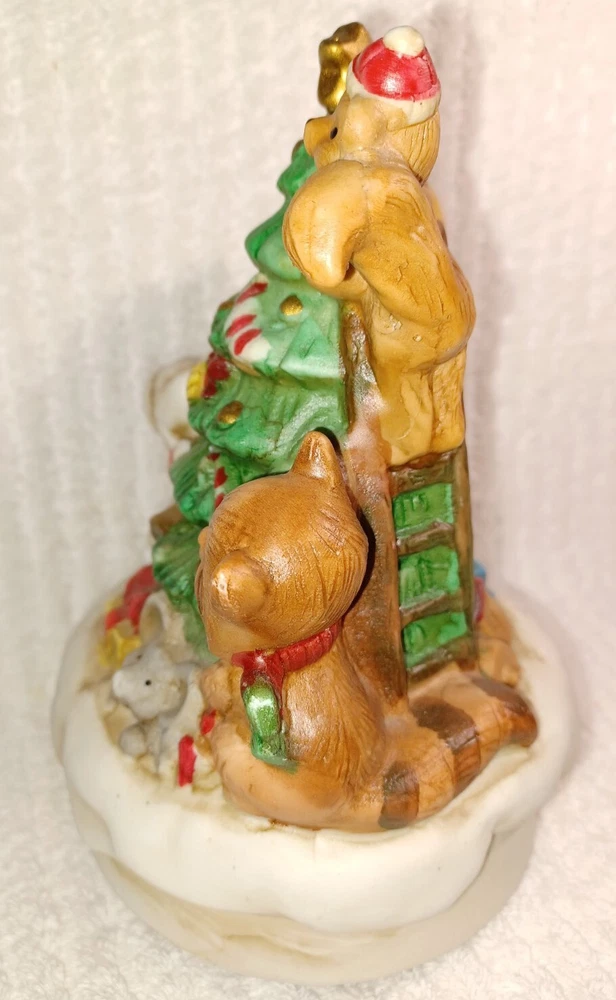 Vintage Christmas Forest Animals Music Box Turns When Wound up but No Music Plays Wind up Approx. 7.5" Tall Bisque Feel Gently Used See all Photos as Part of Description Smoke Free