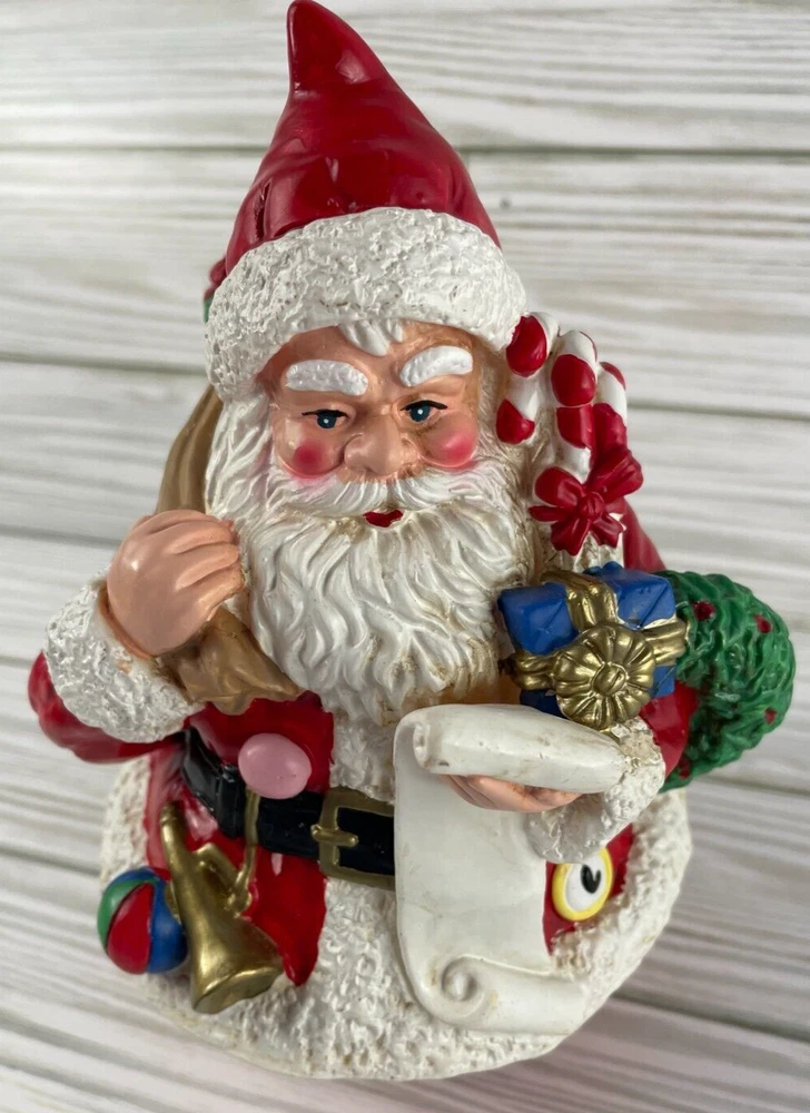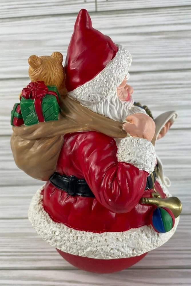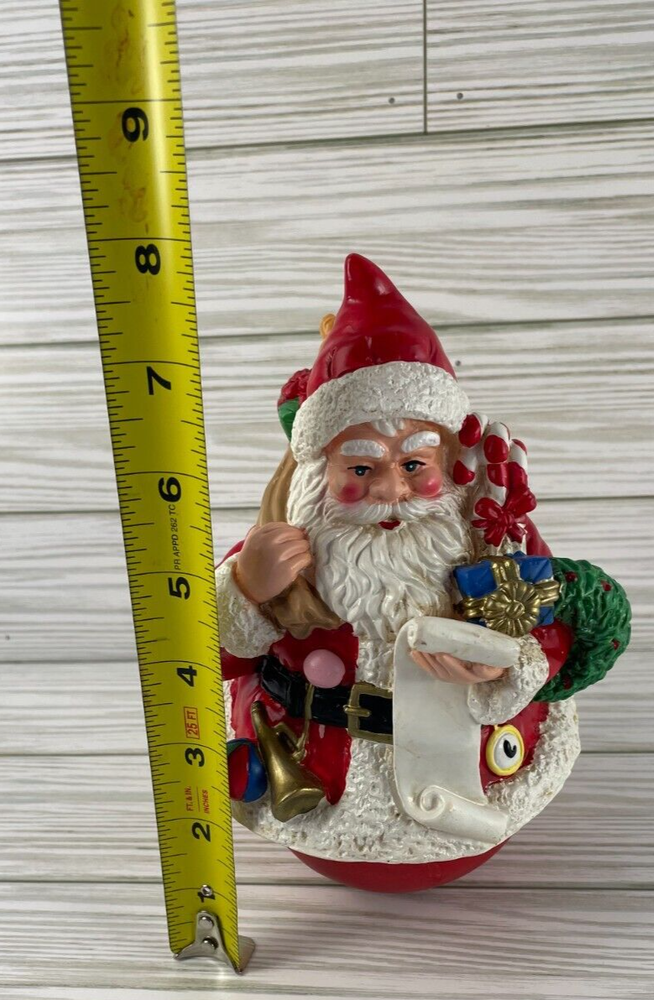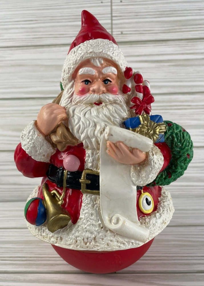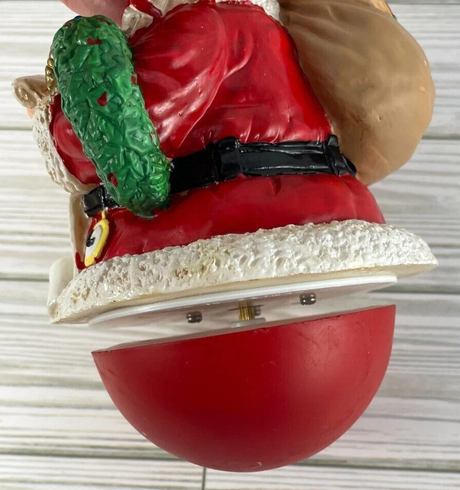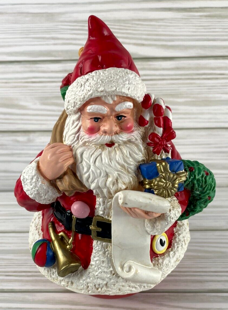 Very cute wind-up musical figurine of Santa Claus with presents, This is a vintage wind-up musical figurine of Santa Claus with presents, made by R.O.C. in Taiwan during the late 20th century. The figurine is round and measures 4" in width x 8" in height and features a Santa Claus checking his list & carrying a bag of presents. The bottom of the figurine is musical & when you turn the bottom of the figurine, it plays "Santa Claus is Coming to Town". See the video to see how it works and hear the music. Smoke-free home. Save my eBay Store as a favorite for other Christmas collectibles. I will gladly combine shipping. If you pay for multiple items at the same time, I refund for combined shipping. Items added daily. Thanks for looking!
