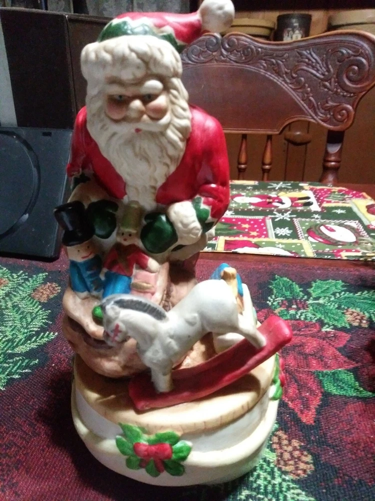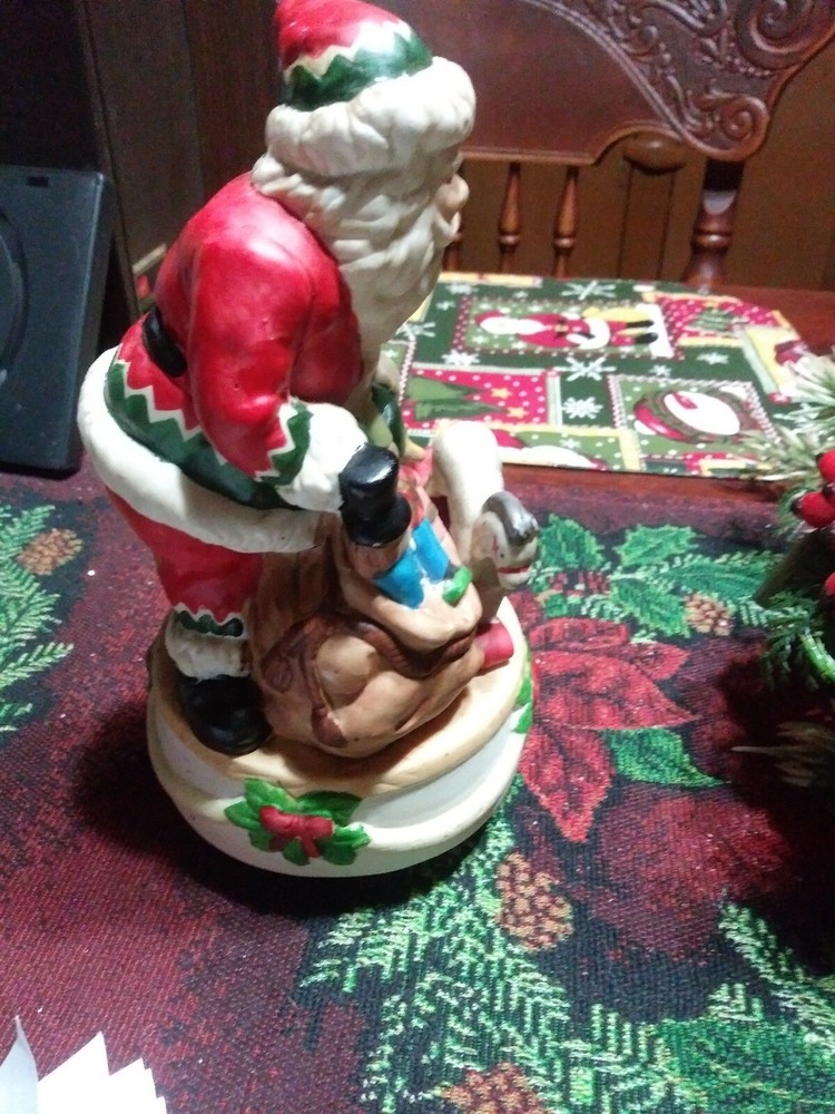 Vintage Musical Wind Up Santa Claus Figurine. 8 1/2" t, 4" w and 4" d. Great condition for being 30+ years old!!! Classic addition to any Holiday decor or a great xmas gift!!! Condition is Used. Shipp...