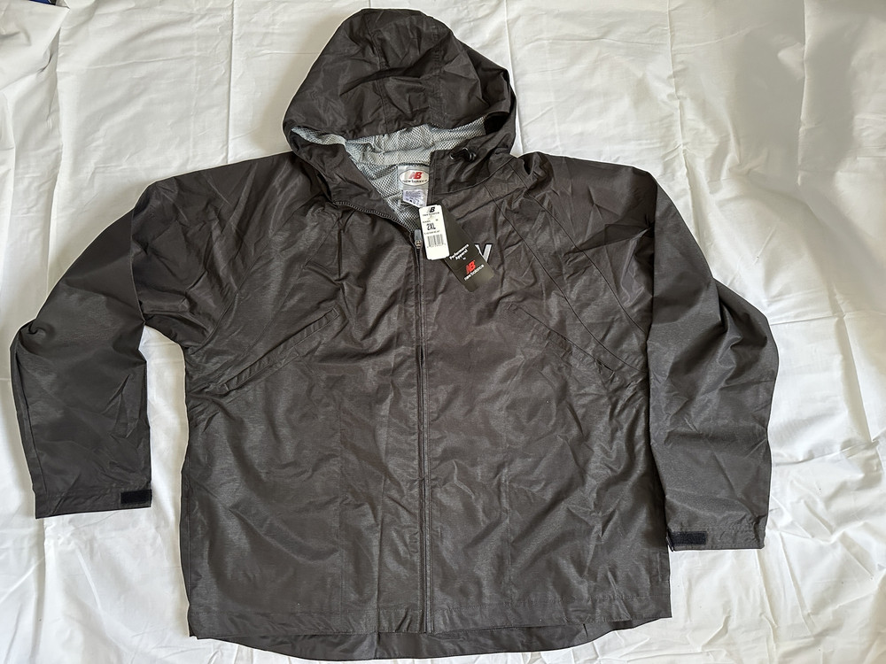 New Balance Coat Jacket NEW This is a vintage coat or jacket made by New Balance.It is style number MKJ06FL. It is men's size 2XL (XXL). The outer shell is made of 74% polyester and 26% nylon. The mesh lining is polyester.This Performance Apparel is water resistant and windproof. It is a black color. It has a zipper for the center closure. There are front hand pockets and the cuffs have straps for adjustments. The chest measures 50 inches around, the bottom edge measures 50 inches around, and the length measures 29 inches in the front. The NB New Balance logo is embroidered on the upper left front. This quality jacket or coat is new with the tags and has not been used. Shipping and handling is $12. Thanks for looking, and enjoy! : ) Vintage NEW BALANCE Black Wind Rain Jacket Coat Men's XXL 2XL NEW NWT New Balance Coat Jacket NEW This is a vintage coat or jacket made by New Balance.It is style number MKJ06FL. It is men's size 2XL (XXL). The outer shell is made of 74% polyester and 26% nylon. The mesh lining is polyester.This Performance Apparel is water resistant and windproof. It is a black color. It has a zipper for the center closure. There are front hand pockets and the cuffs have straps for adjustments. The chest measures 50 inches around, the bottom edge measures 50 inches around, and the length measures 29 inches in the front. The NB New Balance logo is embroidered on the upper left front. This quality jacket or coat is new with the tags and has not been used. Shipping and handling is $12. Thanks for looking, and enjoy! : ) New Balance Coat Jacket NEW This is a vintage coat or jacket made by New Balance . It is style number MKJ06FL . It is men's size 2XL (XXL). The outer shell is made of 74% polyester and 26% nylon. The mesh lining is polyester. This Performance Apparel is water resistant and windproof. It is a black color. It has a zipper for the center closure. There are front hand pockets and the cuffs have straps for adjustments. The chest measures 50 inches around, the bottom edge measures 50 inches around, and the length measures 29 inches in the front. The NB New Balance logo is embroidered on the upper left front. This quality jacket or coat is new with the tags and has not been used. Shipping and handling is $12. Thanks for looking, and enjoy! : ) Shipping Returns We have a one/next day shipping policy. We ship every day Monday - Friday. We have a 30 day return policy when our customers are unhappy with their purchase . We will refund the winning bid price only - no shipping costs will be reimbursed. The item must be returned in the same condition it was received in. Please contact us with any questions. eBay listing template by 3D sellers.com - Try for Free!