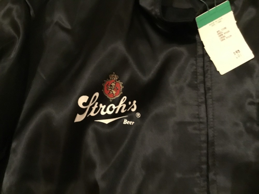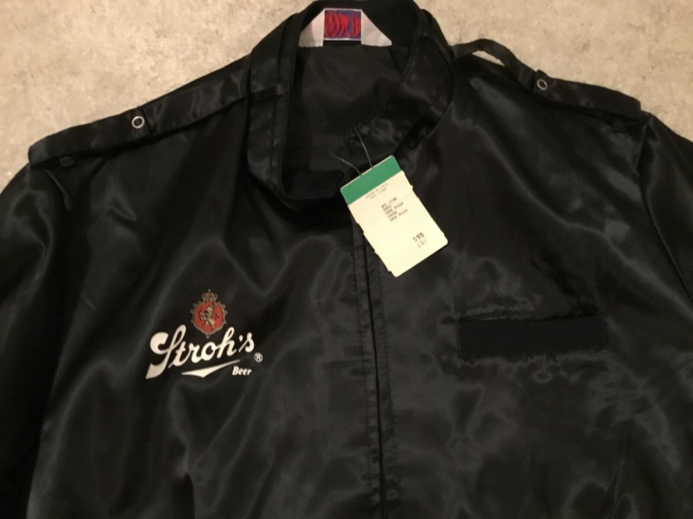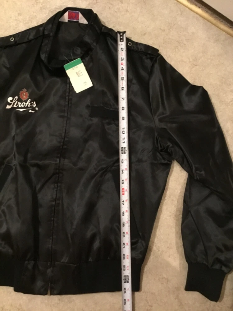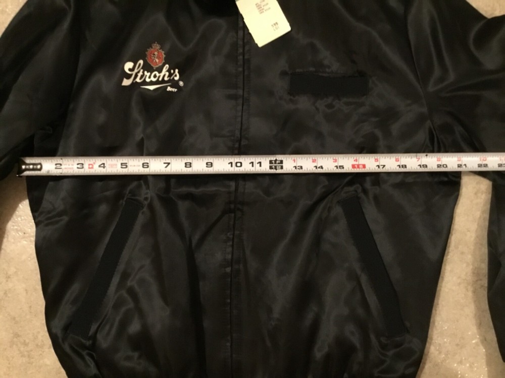 Up for grabs is a nice Newstrohs beer satin jacket.Size mens large.Please check pictures for measurements. Thanks for looking and good bless....