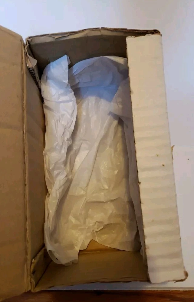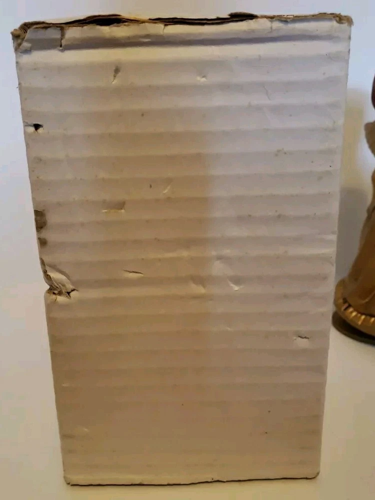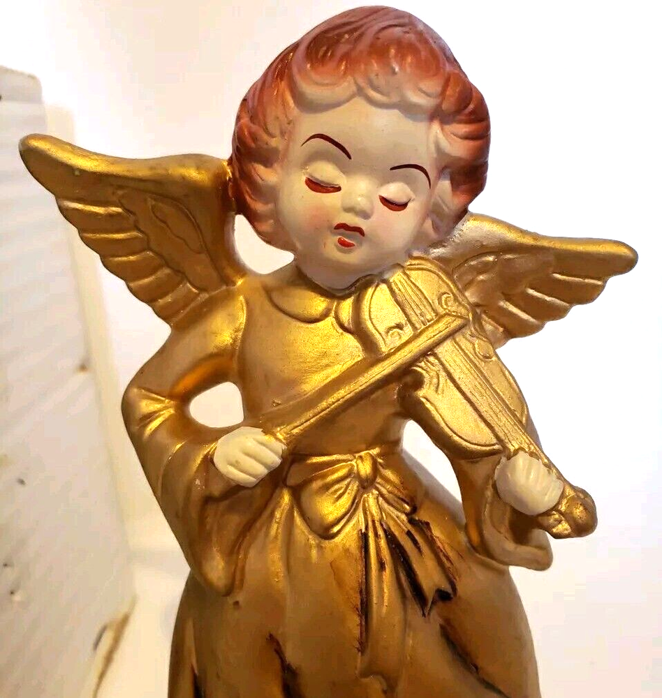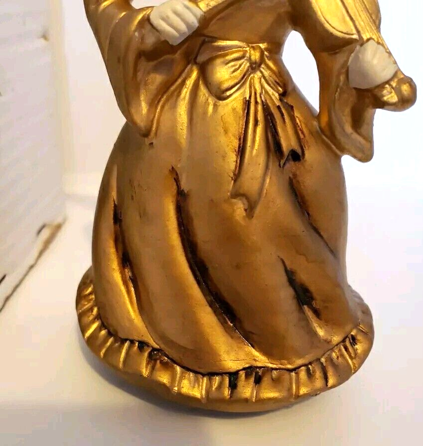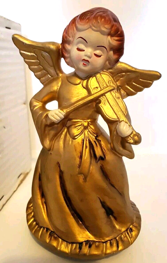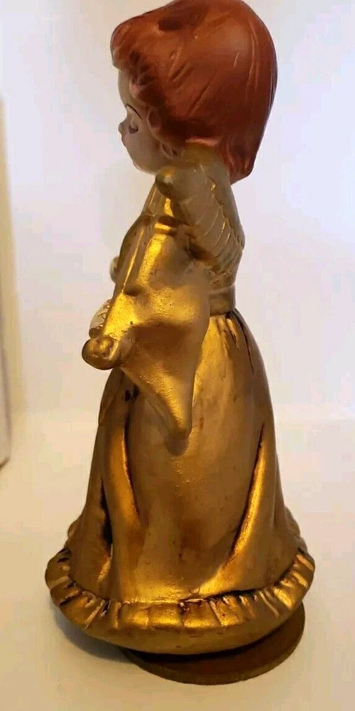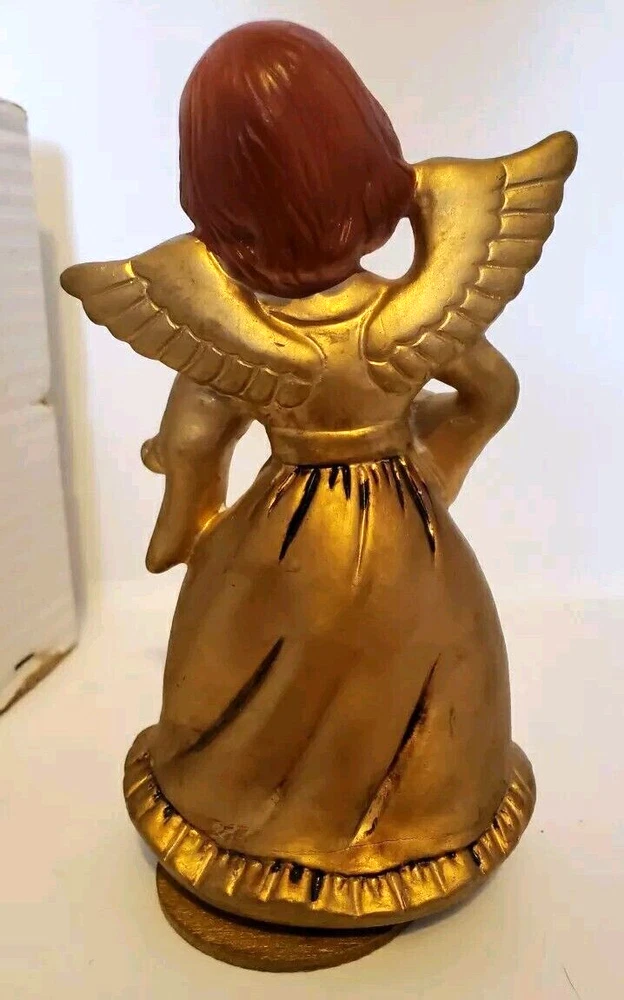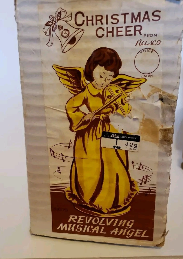 This is a beautiful vintage Nasco angel figurine. Standing at 7 1/2 inches tall she is an antique golden color. In the original box with the original price tag. Box has some minor age and storage related issues. This musical revolving figurine plays Ave Maria and will delight all who see it. Made in Japan, it's a unique and collectible piece that will add charm and joy to your holiday season. The angel subject and character family make it a special and meaningful display. No damage to figurine. Base turns easily. She does play Ave Maria. Please look over all photos and ask any questions before purchase.